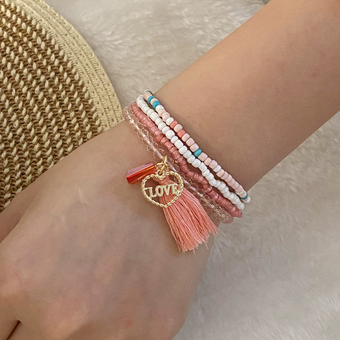 Fashion Glass Rice Bead Daisy Handmade Combination Bracelet For Women