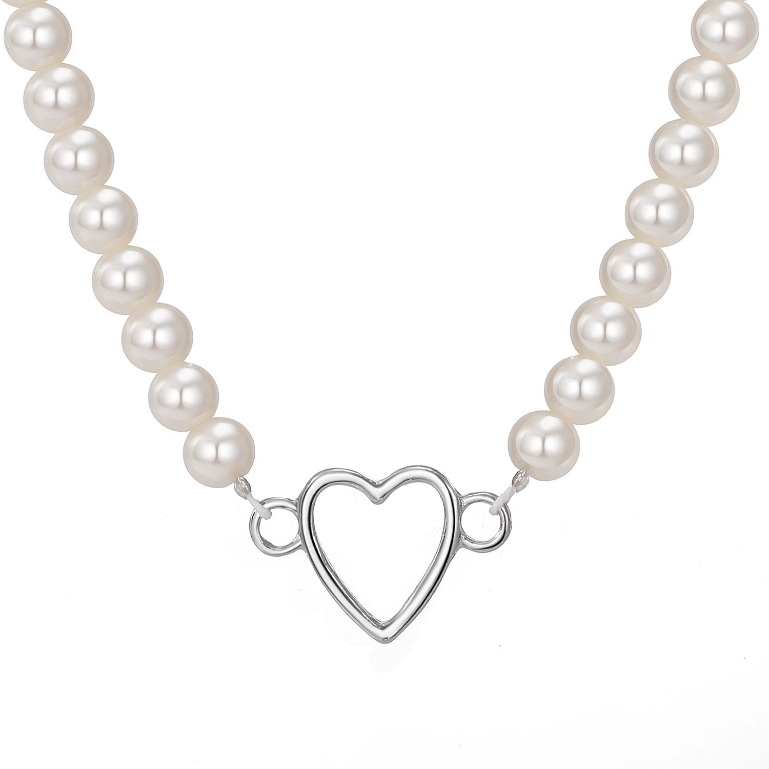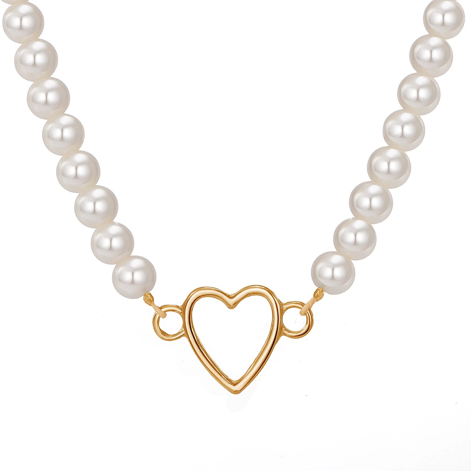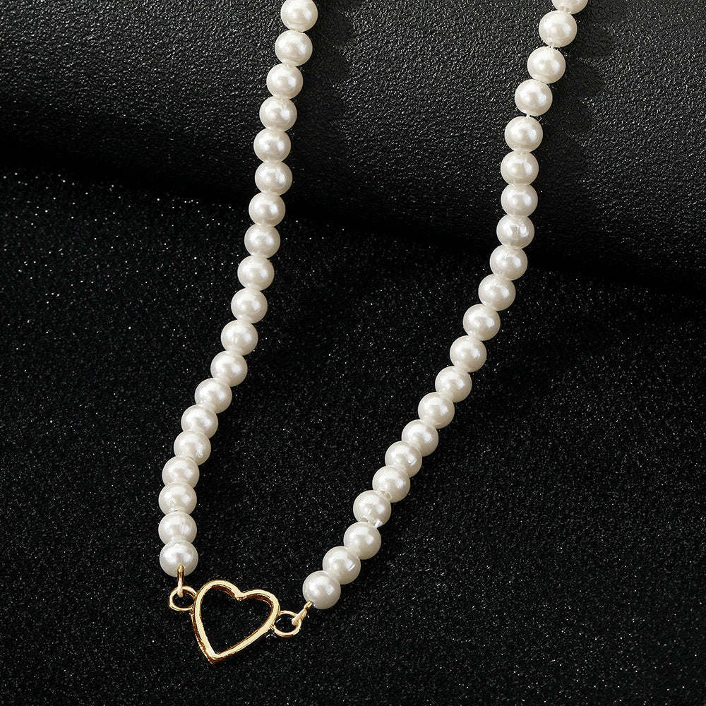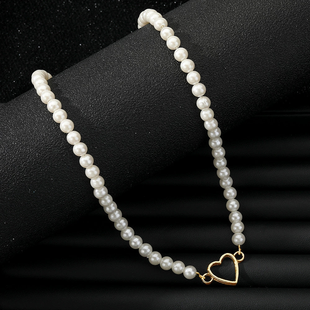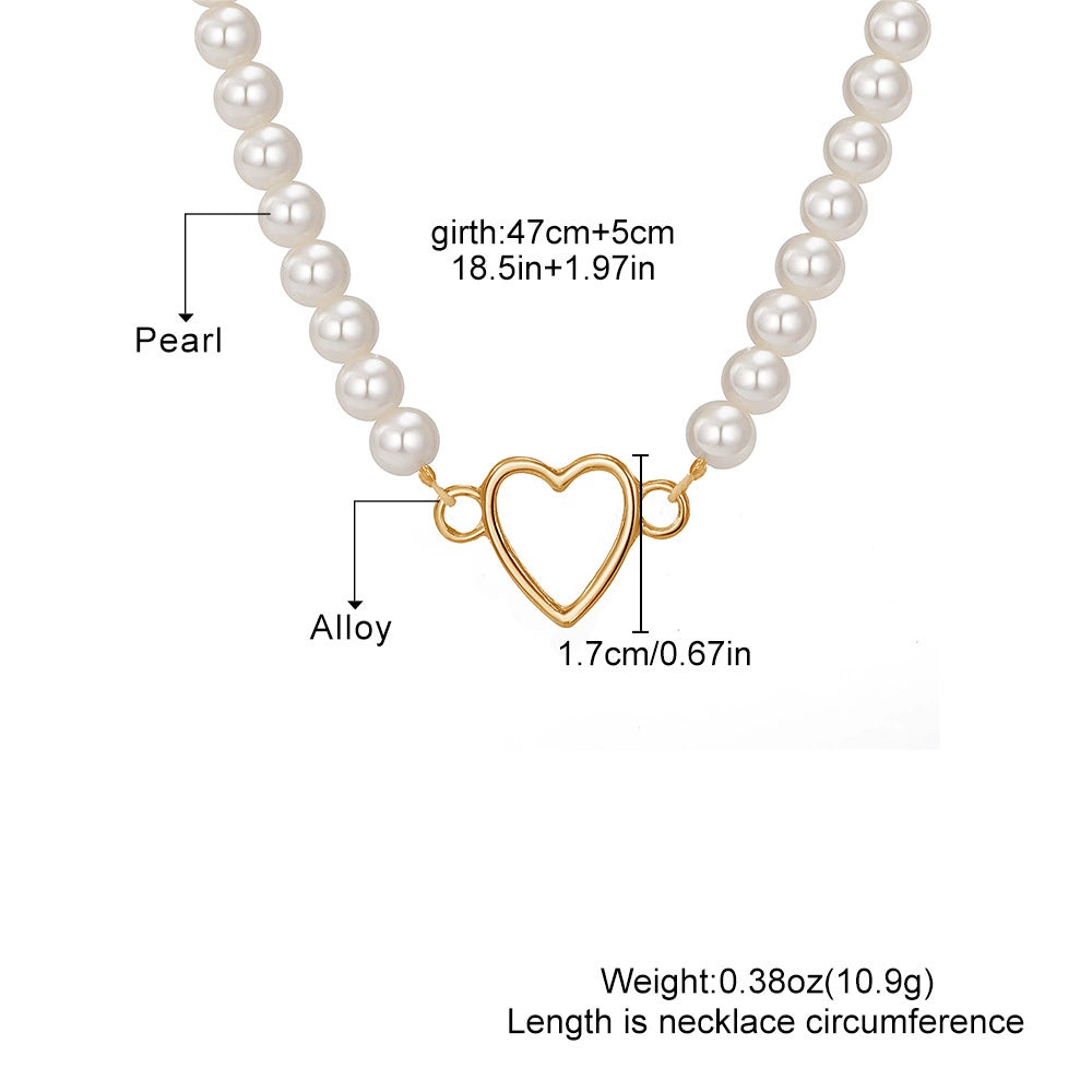 Fashion Jewelry Imitation Pearl Alloy Heart Hollow Geometric French Retro Electroplated Necklace For Women