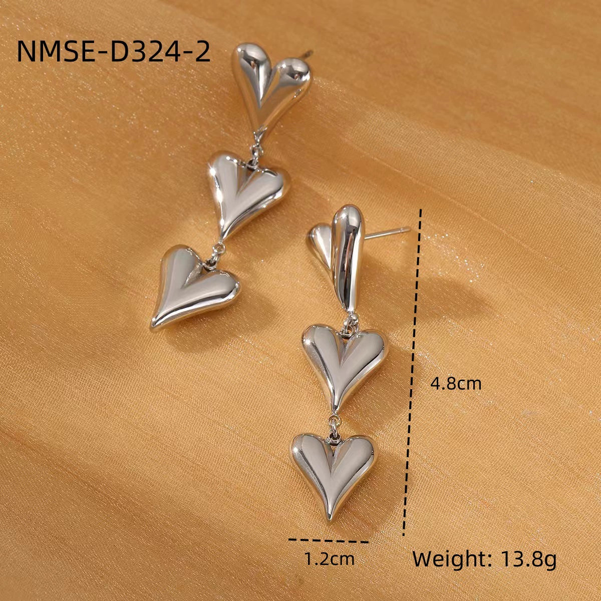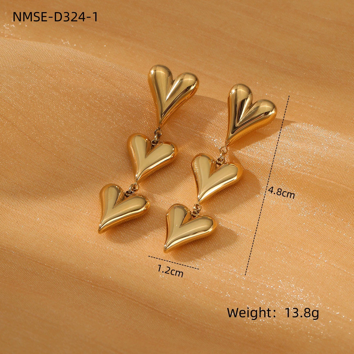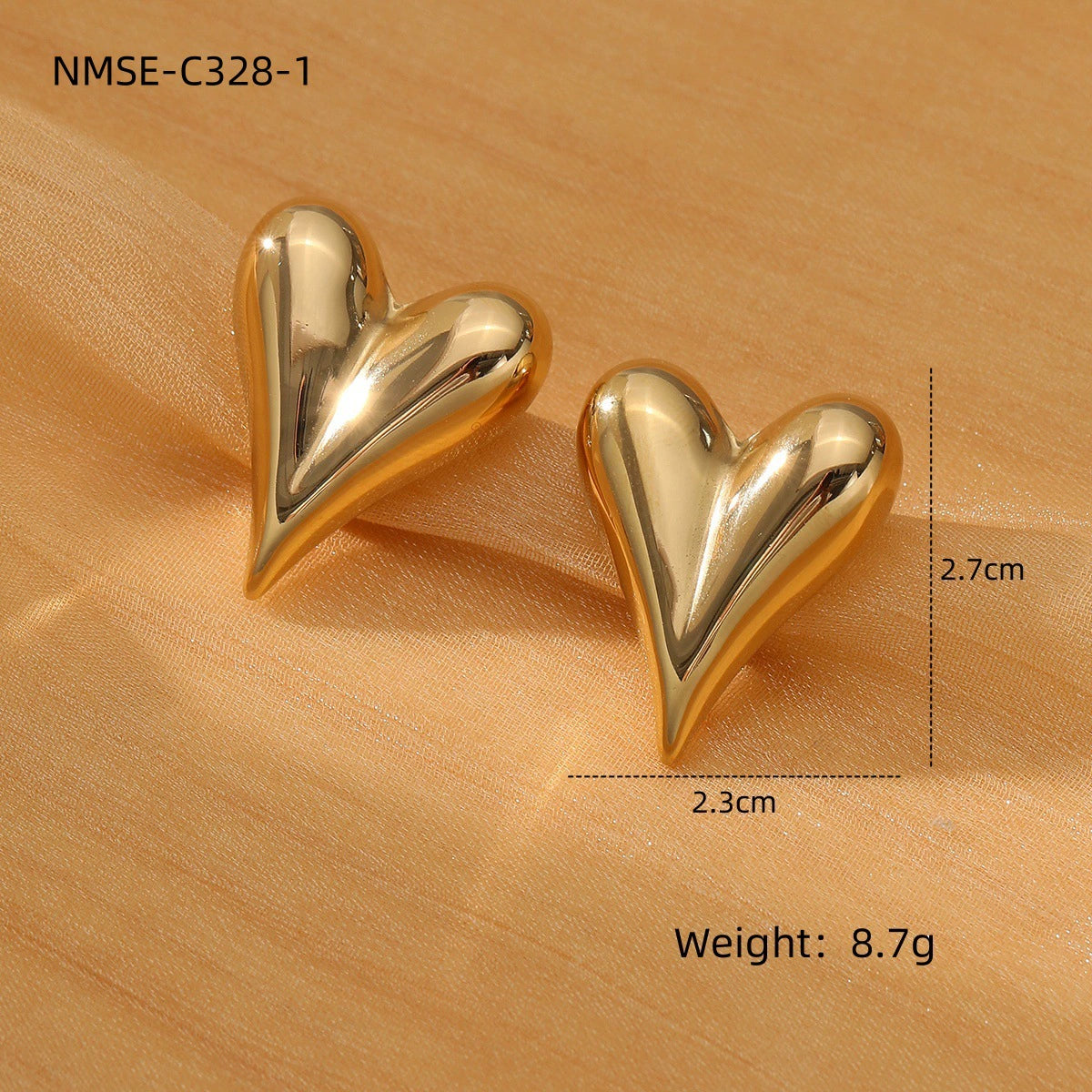 Fashion Niche Design Titanium Steel Heart Earrings For Women With Electroplating Treatment