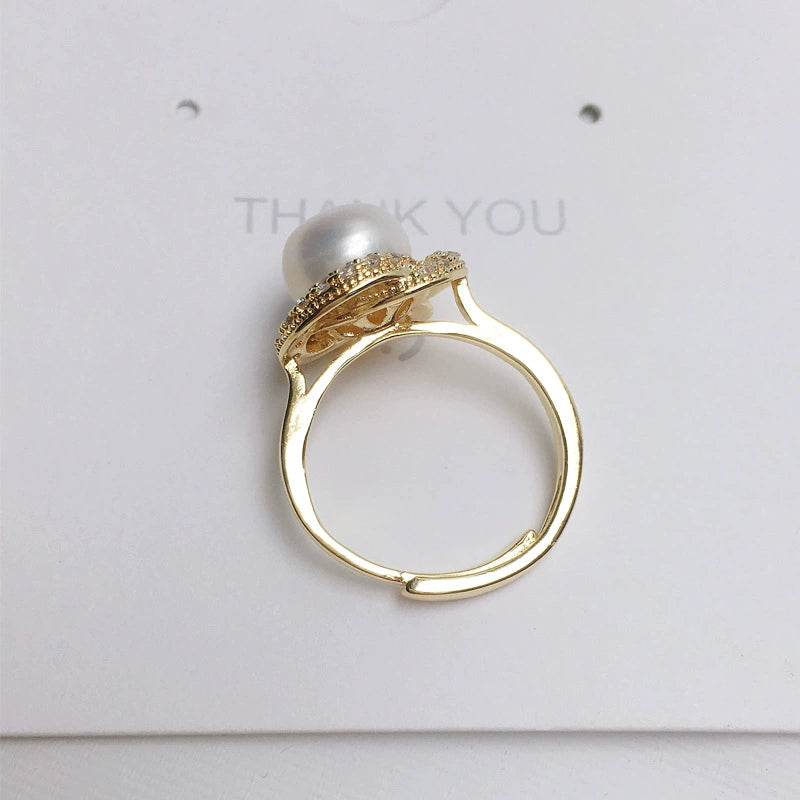 Fashion Noble Freshwater Pearl Zircon Women's Copper Gold Plated Ring