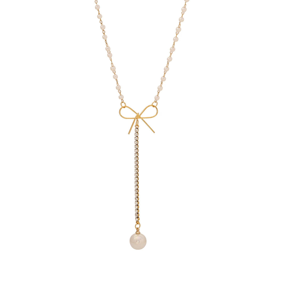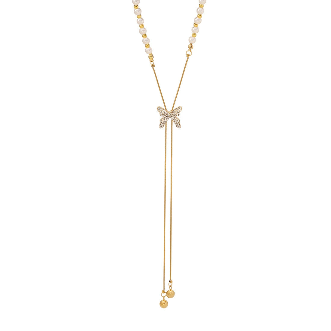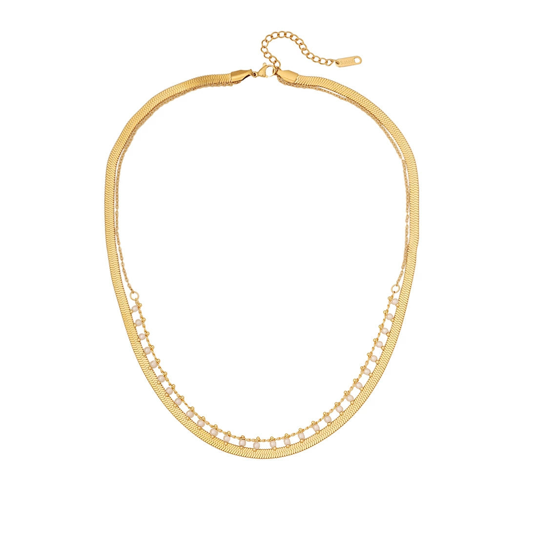 Fashion Pearl Double Chain Temperament Stainless Steel Clavicle Necklace With Blade Chain And Electroplating