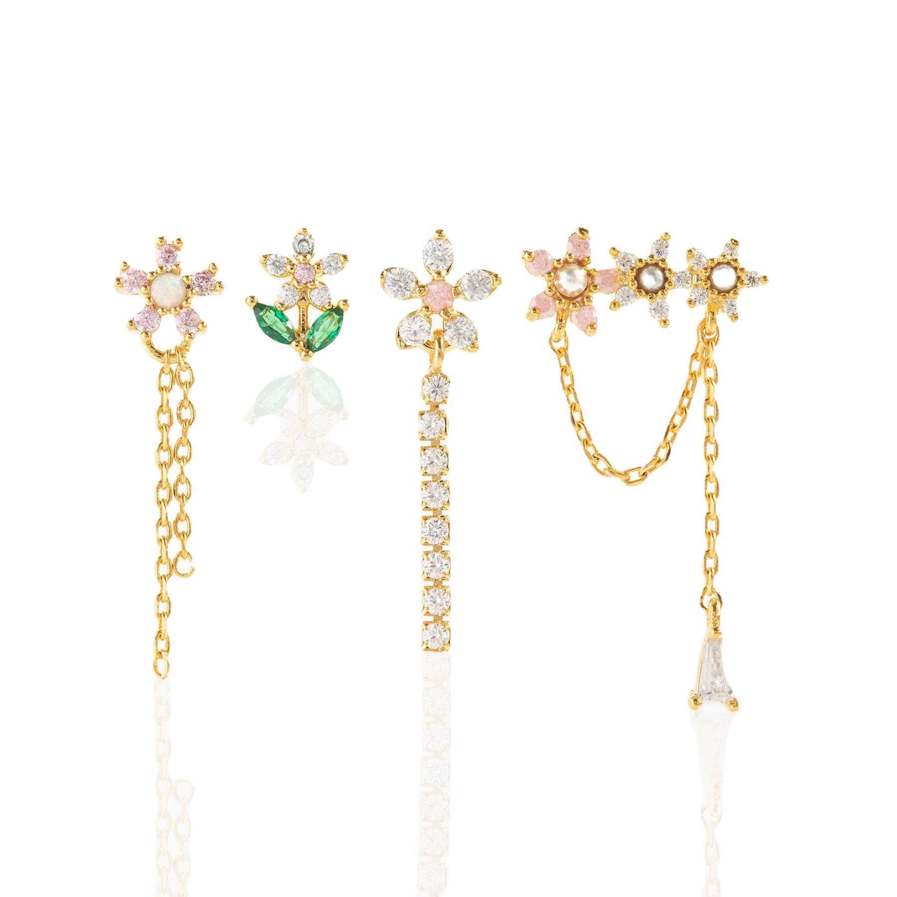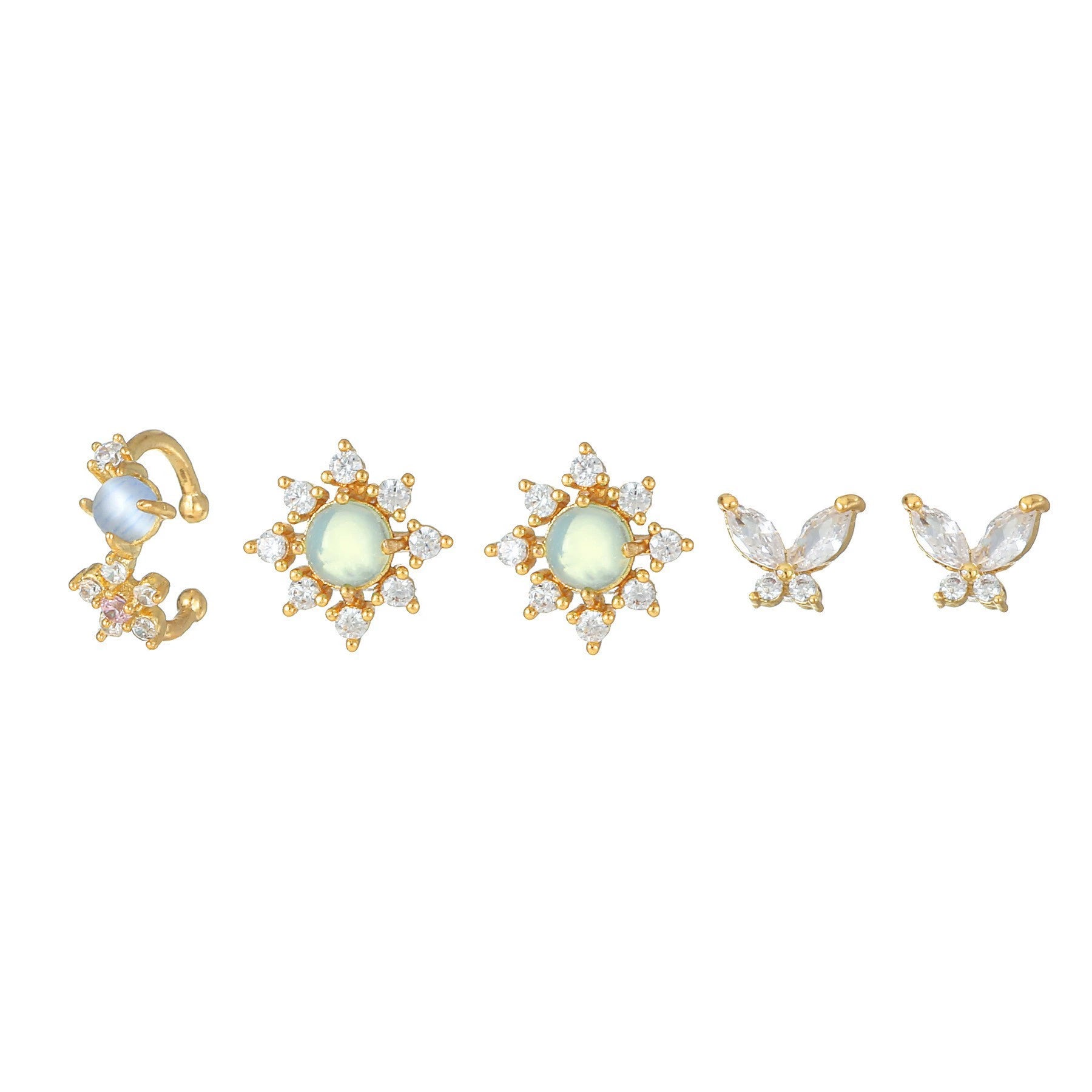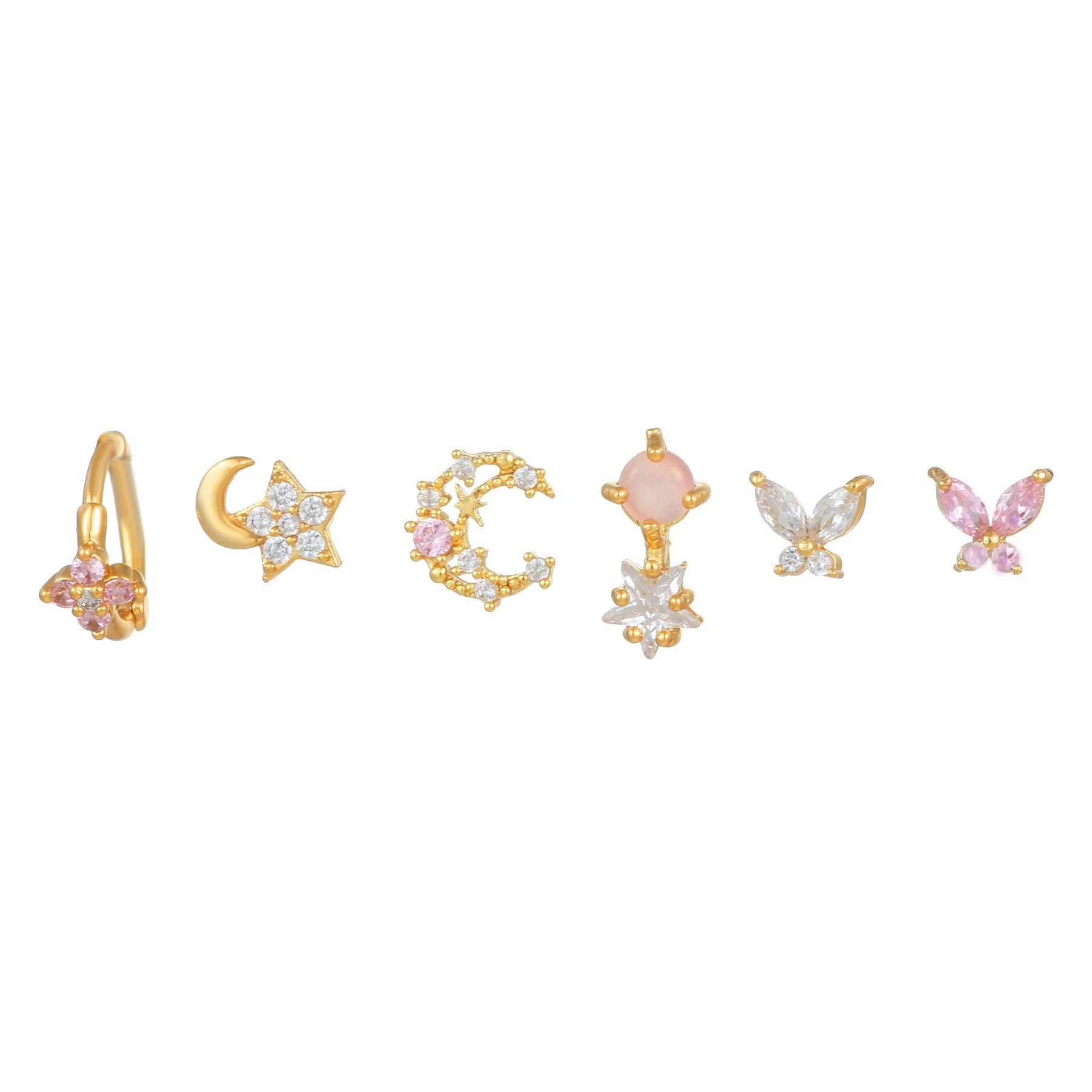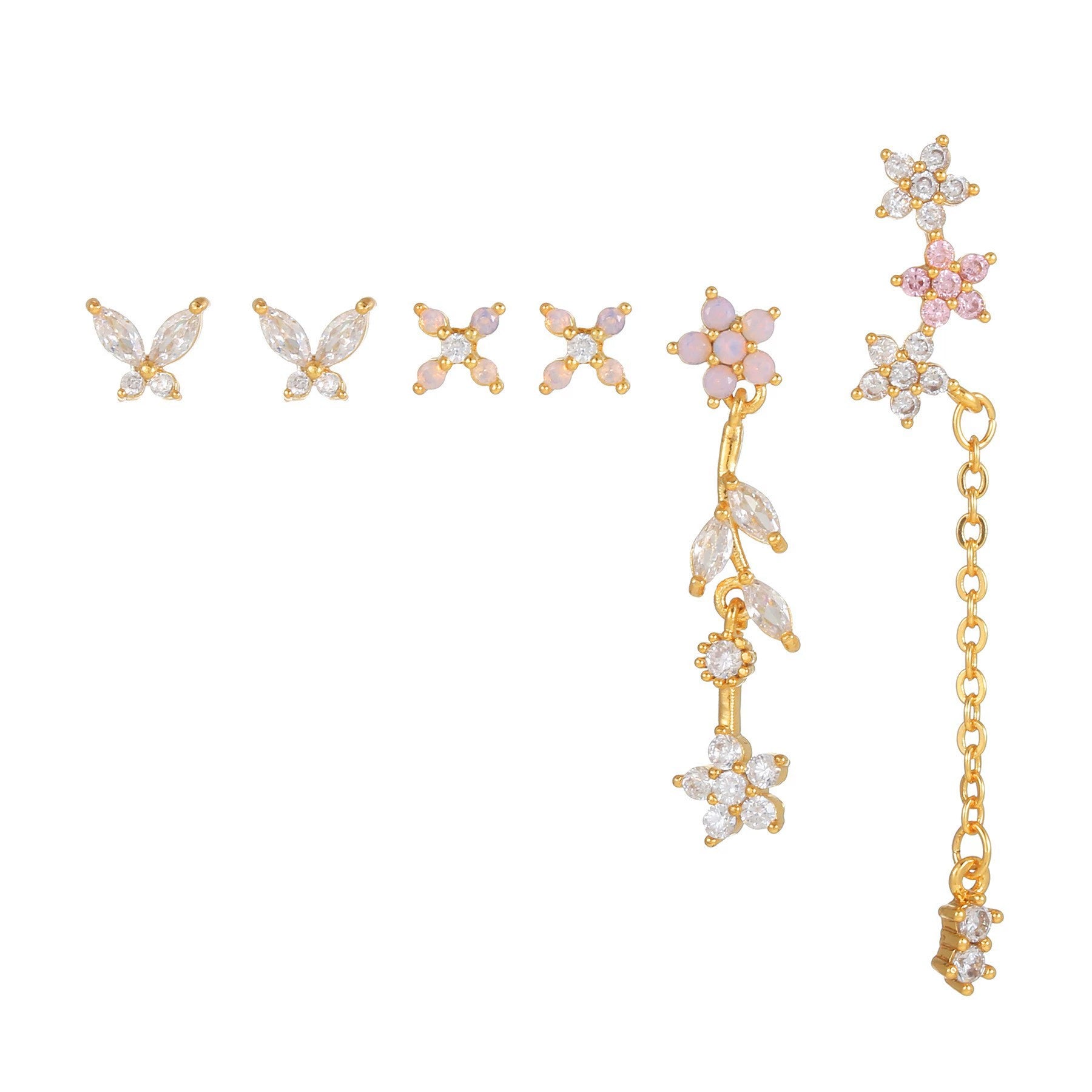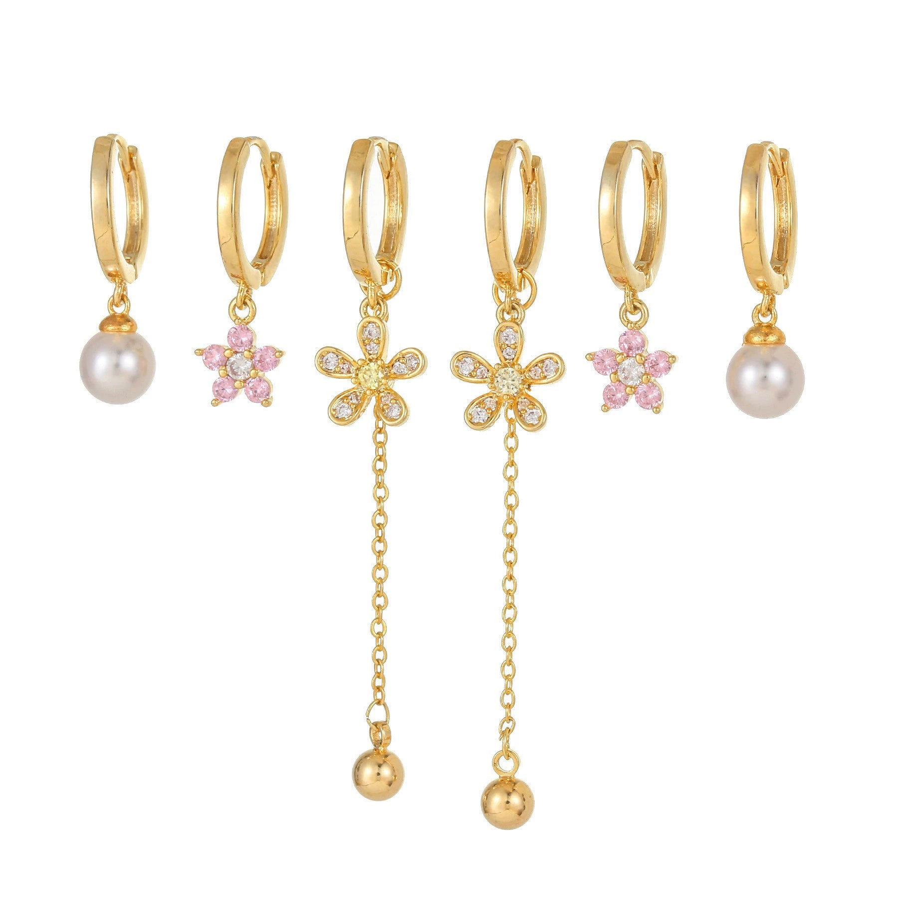 Fashion Pink Zircon Earrings Set Copper Material With Flower Pattern