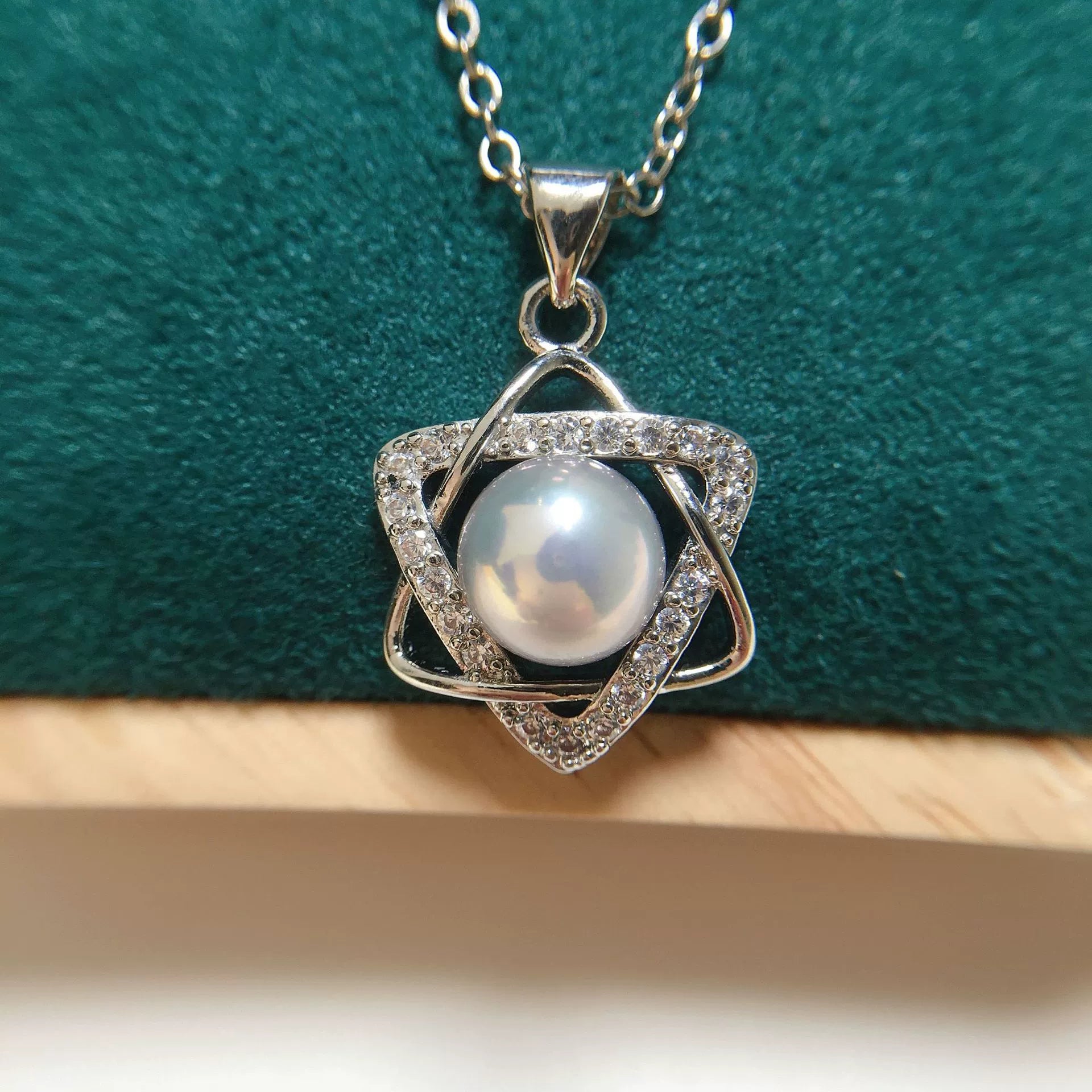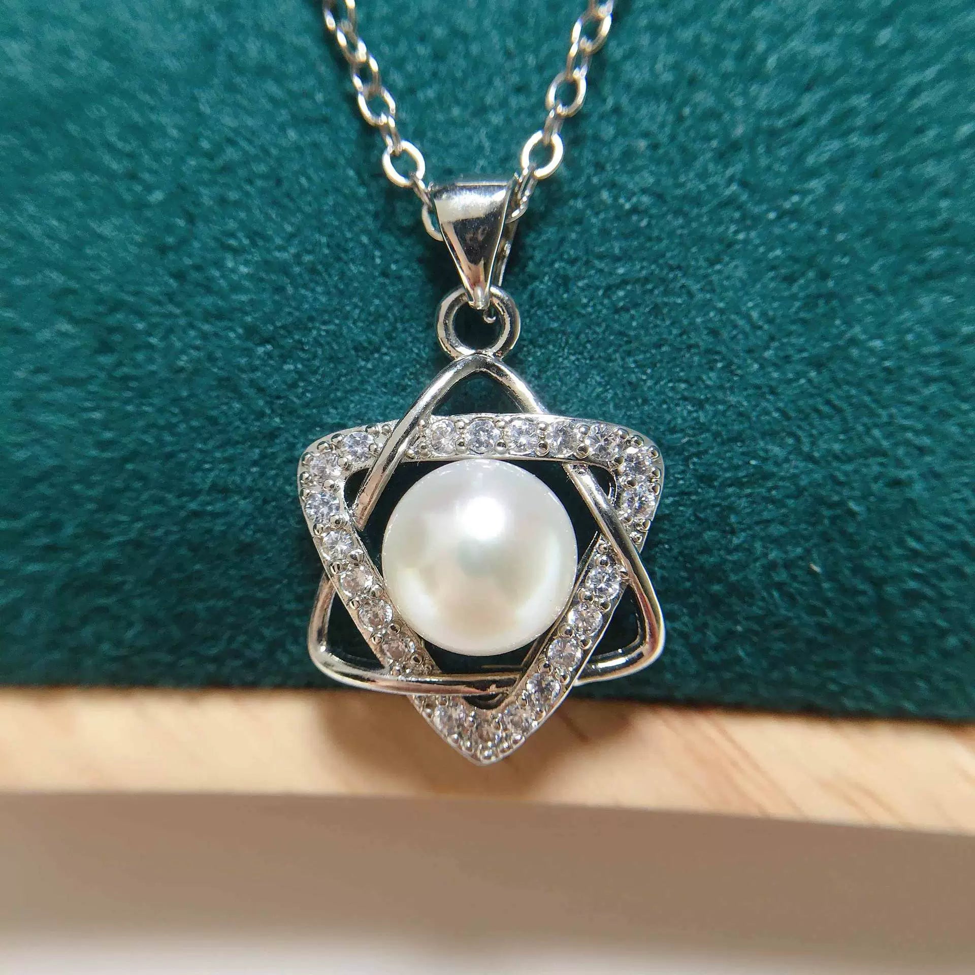 Freshwater Pearl Pendant Necklace Copper Plated With Real Gold Sixpointed Star Microinlaid Zircon