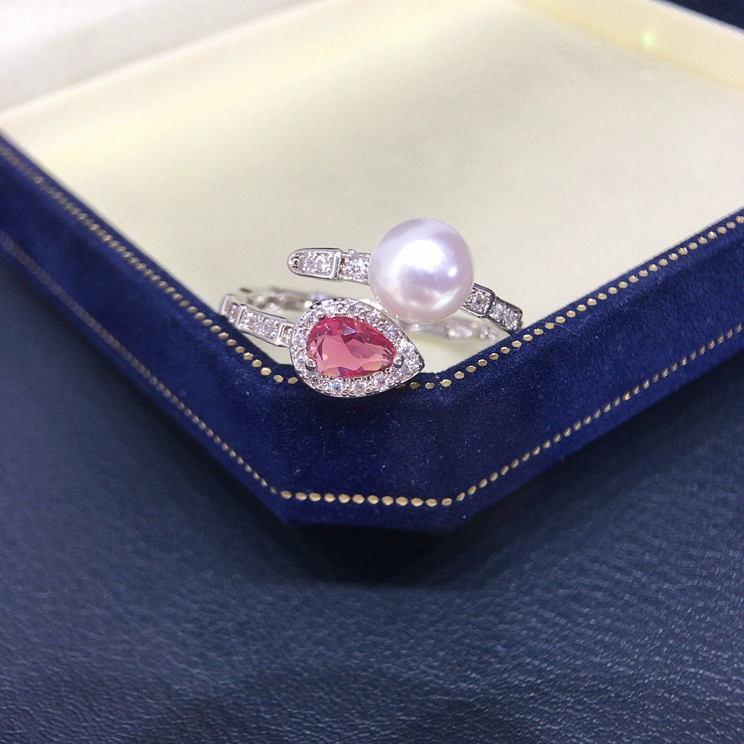 Freshwater Pearl Ring Copper Microinlaid Zircon Bamboo Ruby Open Women's Fashion Jewelry
