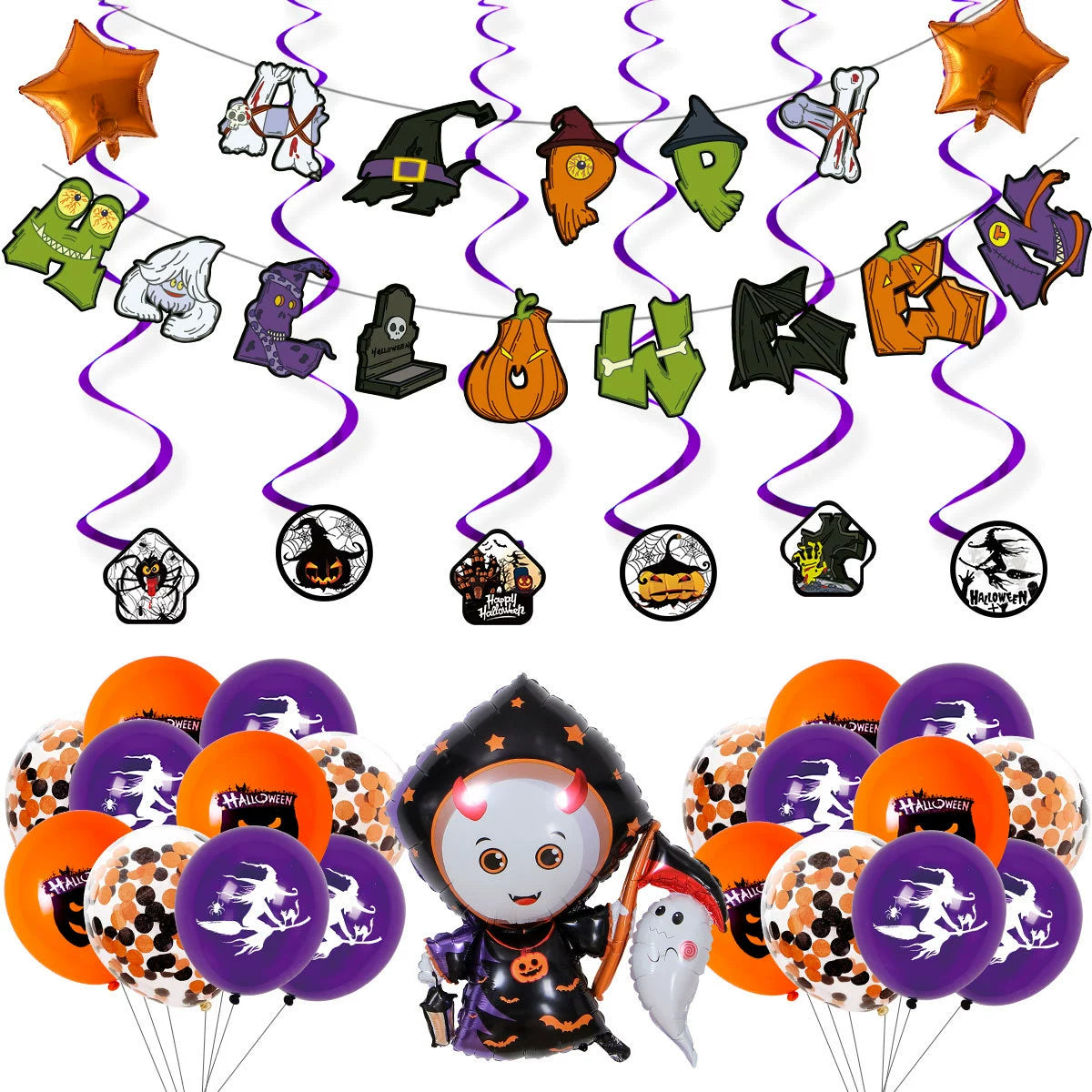 Halloween Party Decoration Aluminum Film And Latex Balloon Suit With Skull Pumpkin Candy Spider Design Round Shape