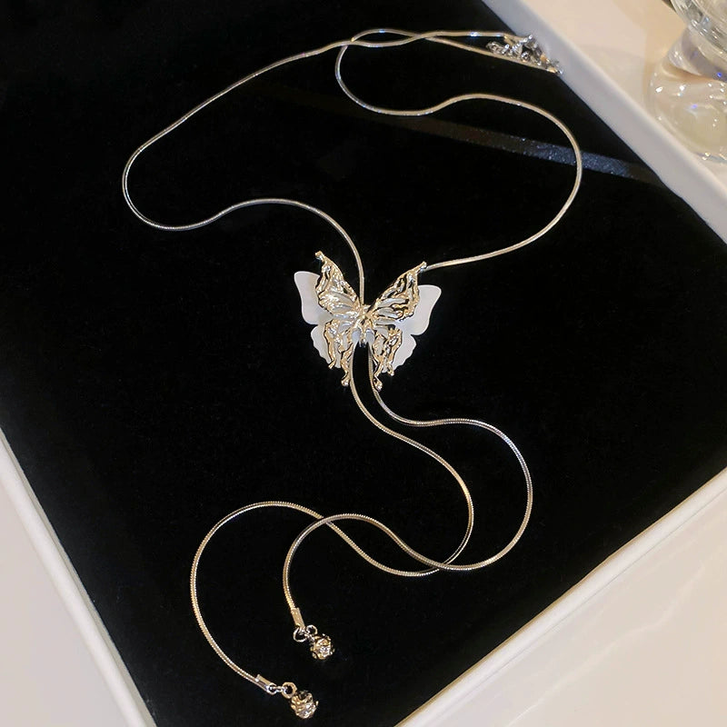 High End Long Adjustable Butterfly Tassel Alloy Clavicle Necklace With Electroplating For Women
