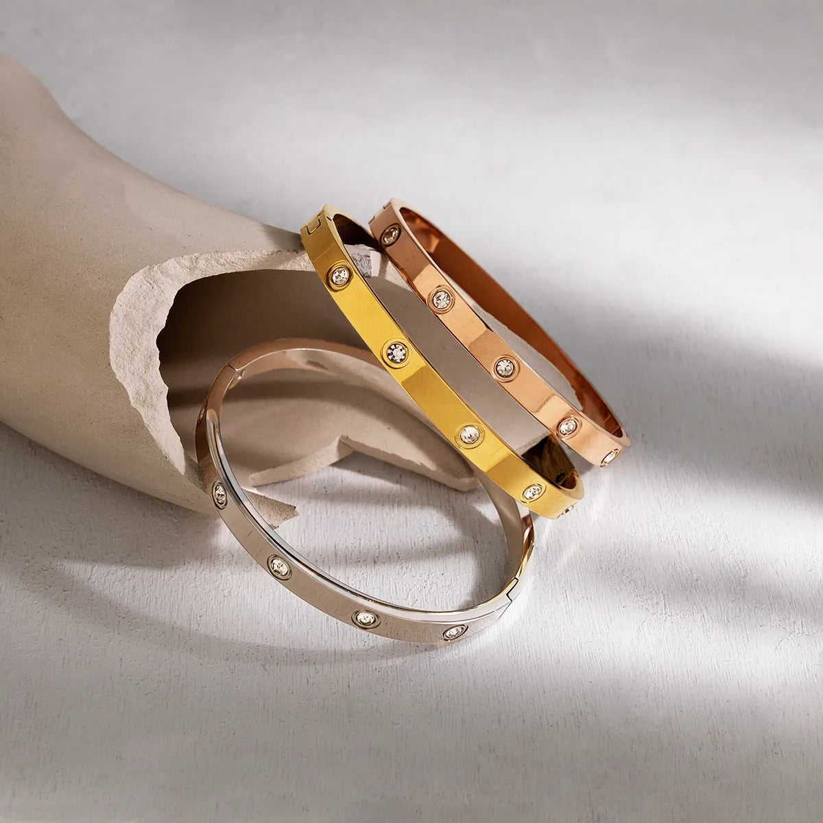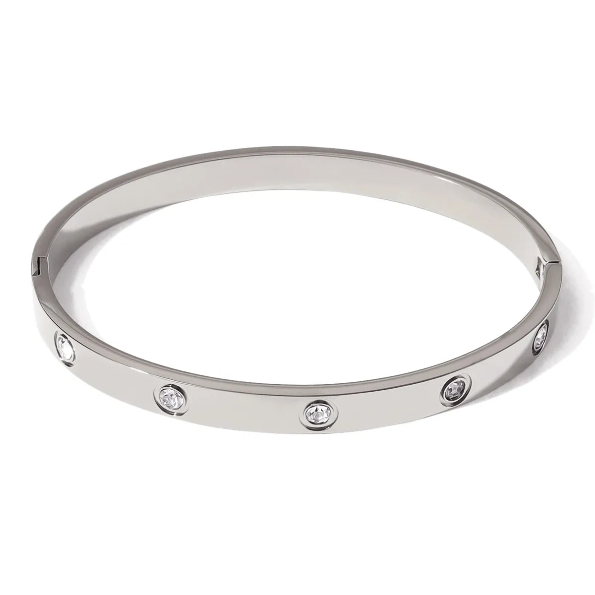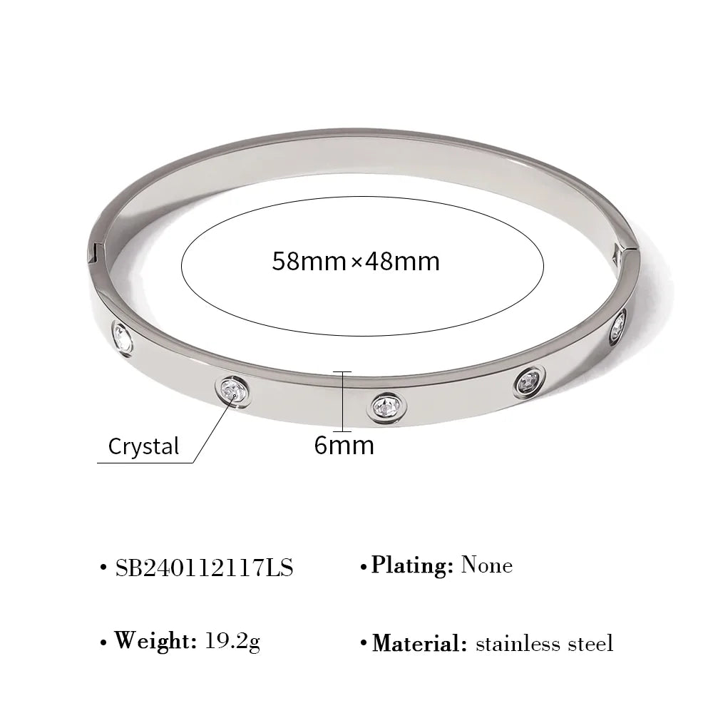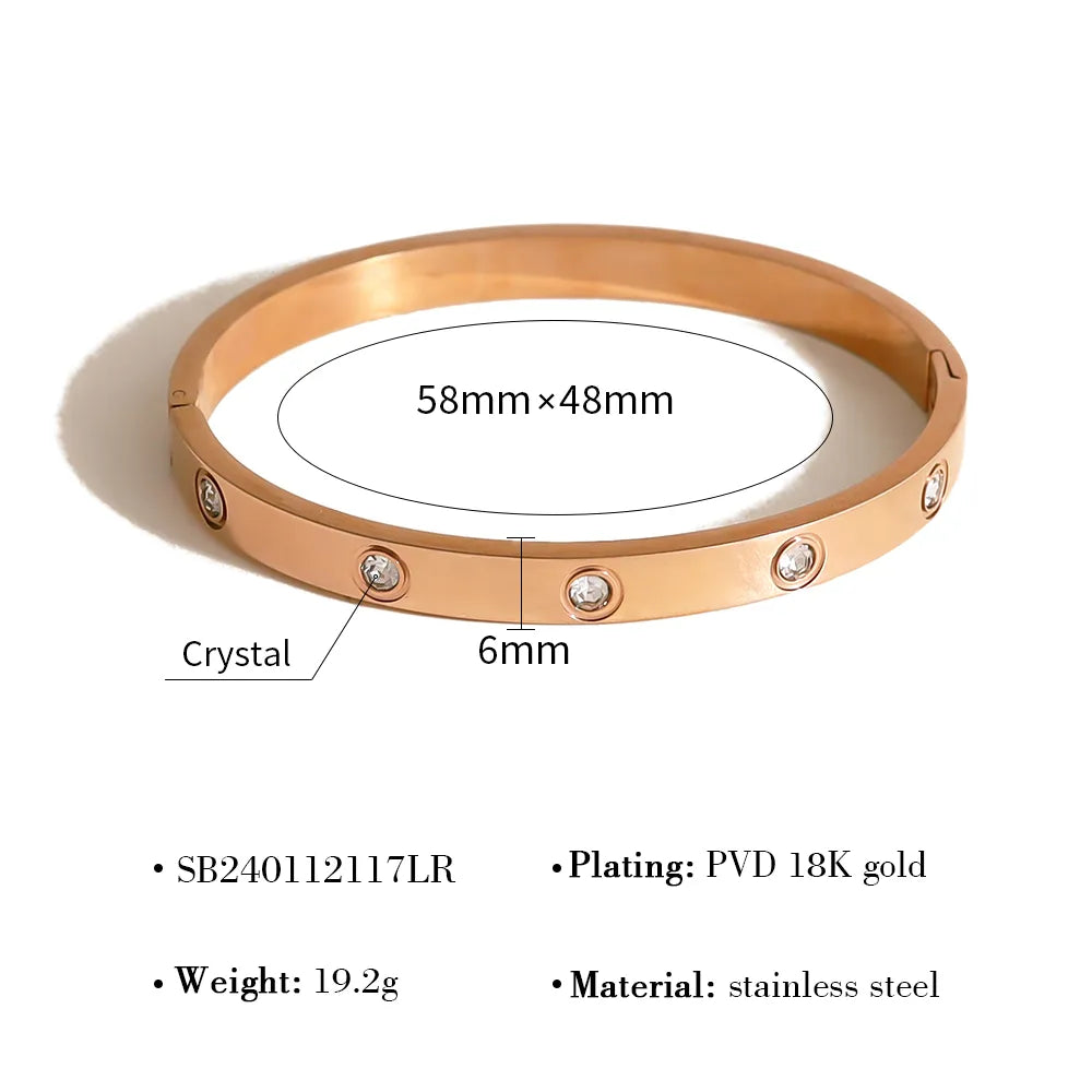 IG Style Vacation French Style Geometric Circle Round 304 Stainless Steel 18K Gold Plated Rose Gold Plated Zircon Bangle In Bulk