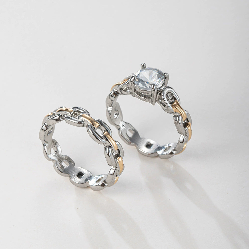 Independent Station Hot White Zircon Ring Plating Double Color Gold Elephant Ladies Simple Jewelry Wholesale