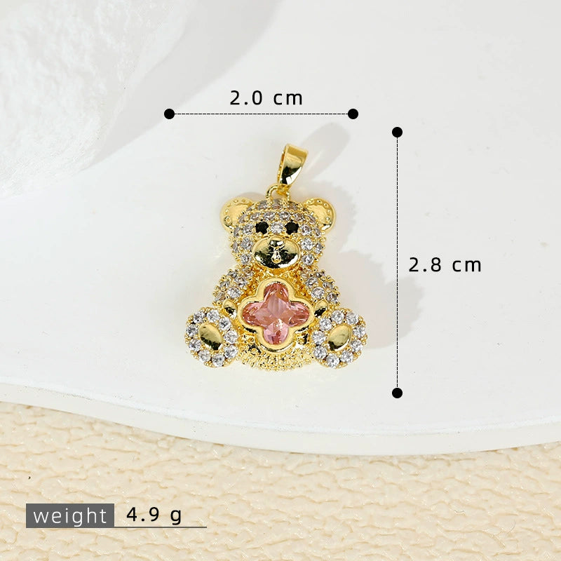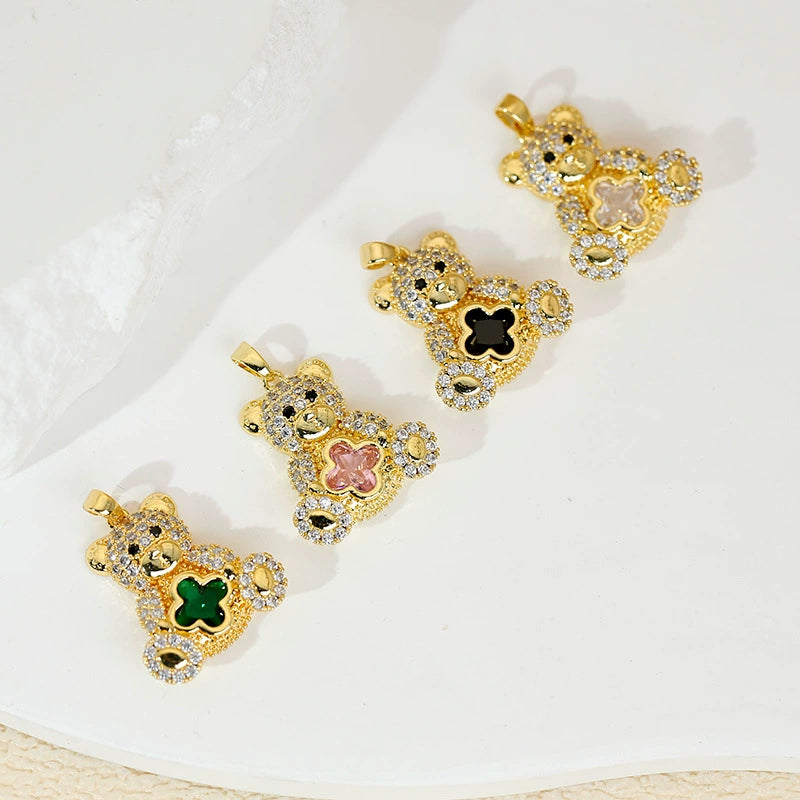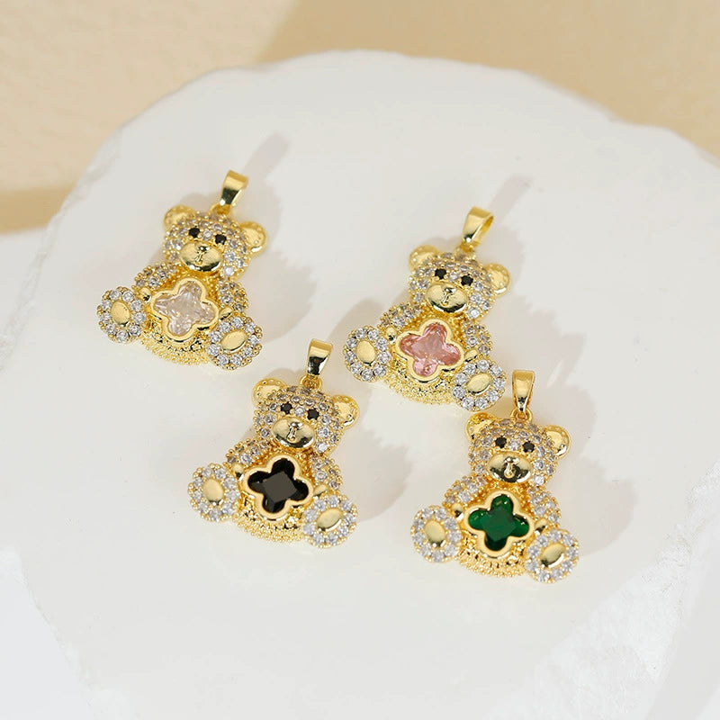 Jewelry Accessories Copper Animals Zodiac Cartoon Style Electroplated Fourleaf Flower Bear Necklace And Earrings