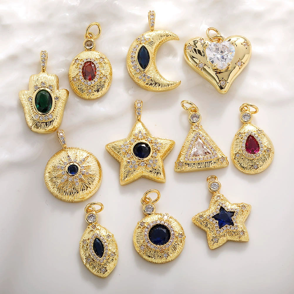 Jewelry Copper Gold Plated Threedimensional Pleated Star Moon Round Oval Palm Small Pendant