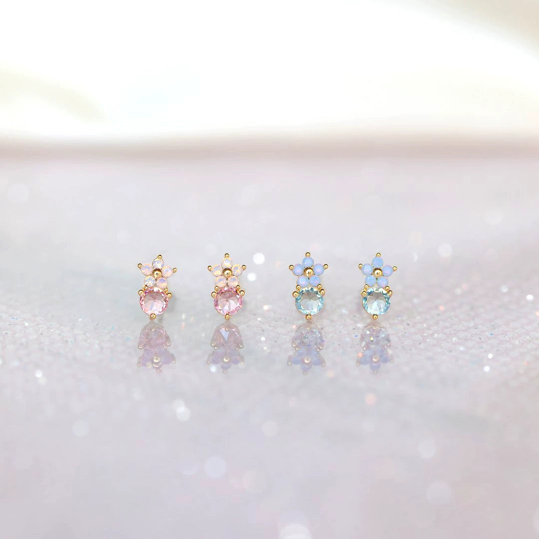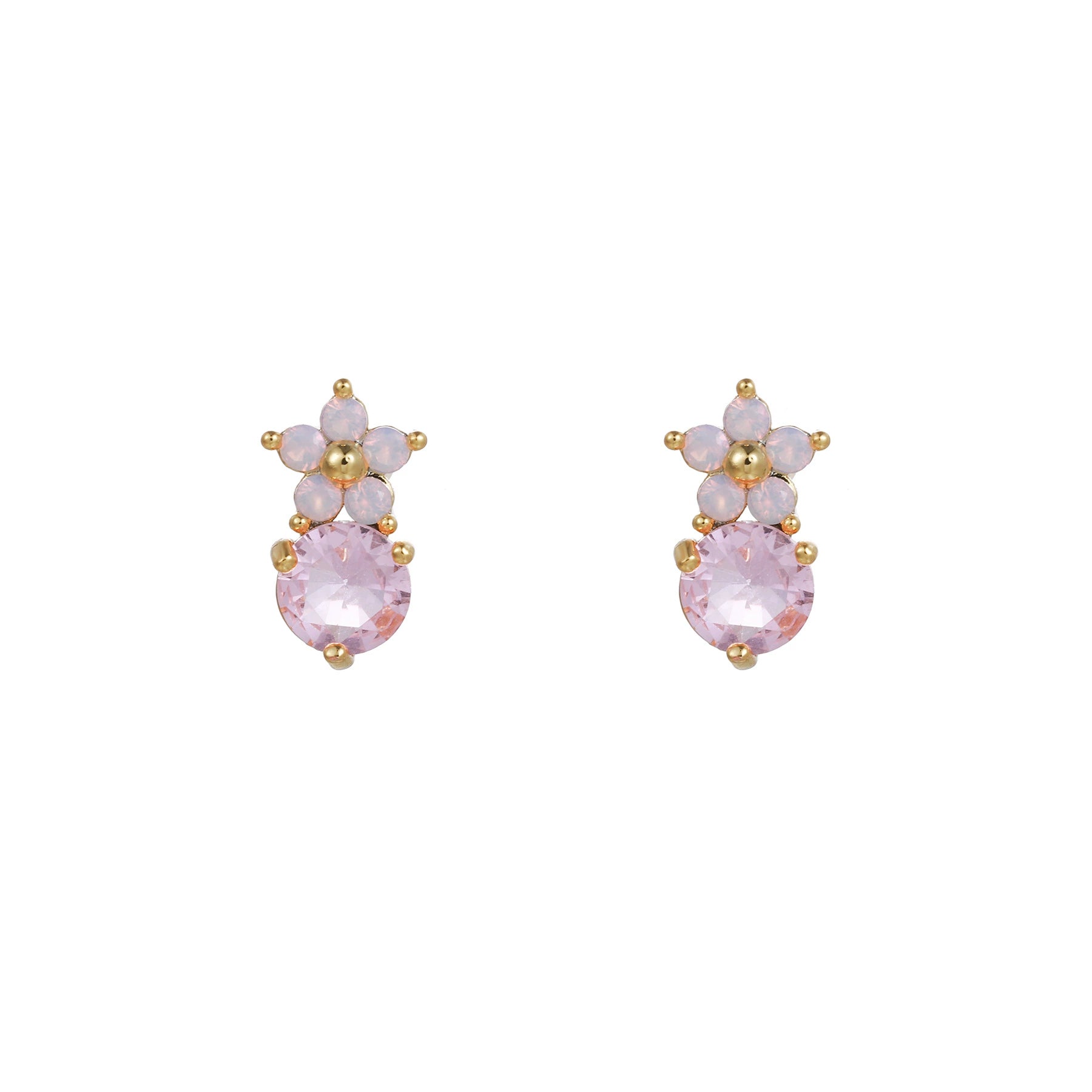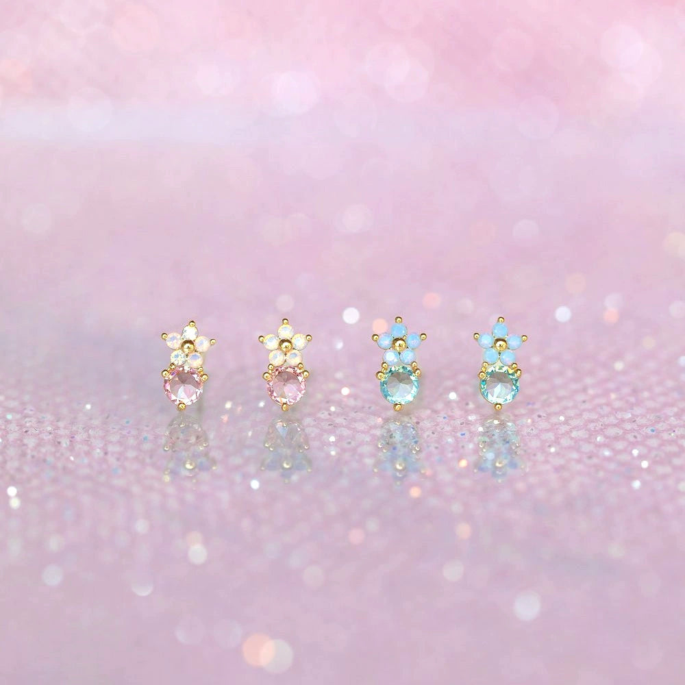 Jewelry Flower Stud Earrings Brass Inlaid Zircon