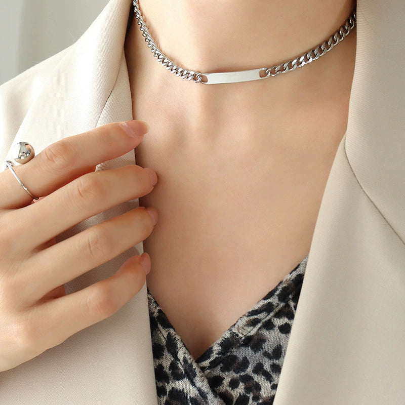 Jewelry Set Titanium Steel 18K Real Gold Plated Geometric Hiphop Heavy Industry Style Cuban Chain Bracelet Necklace