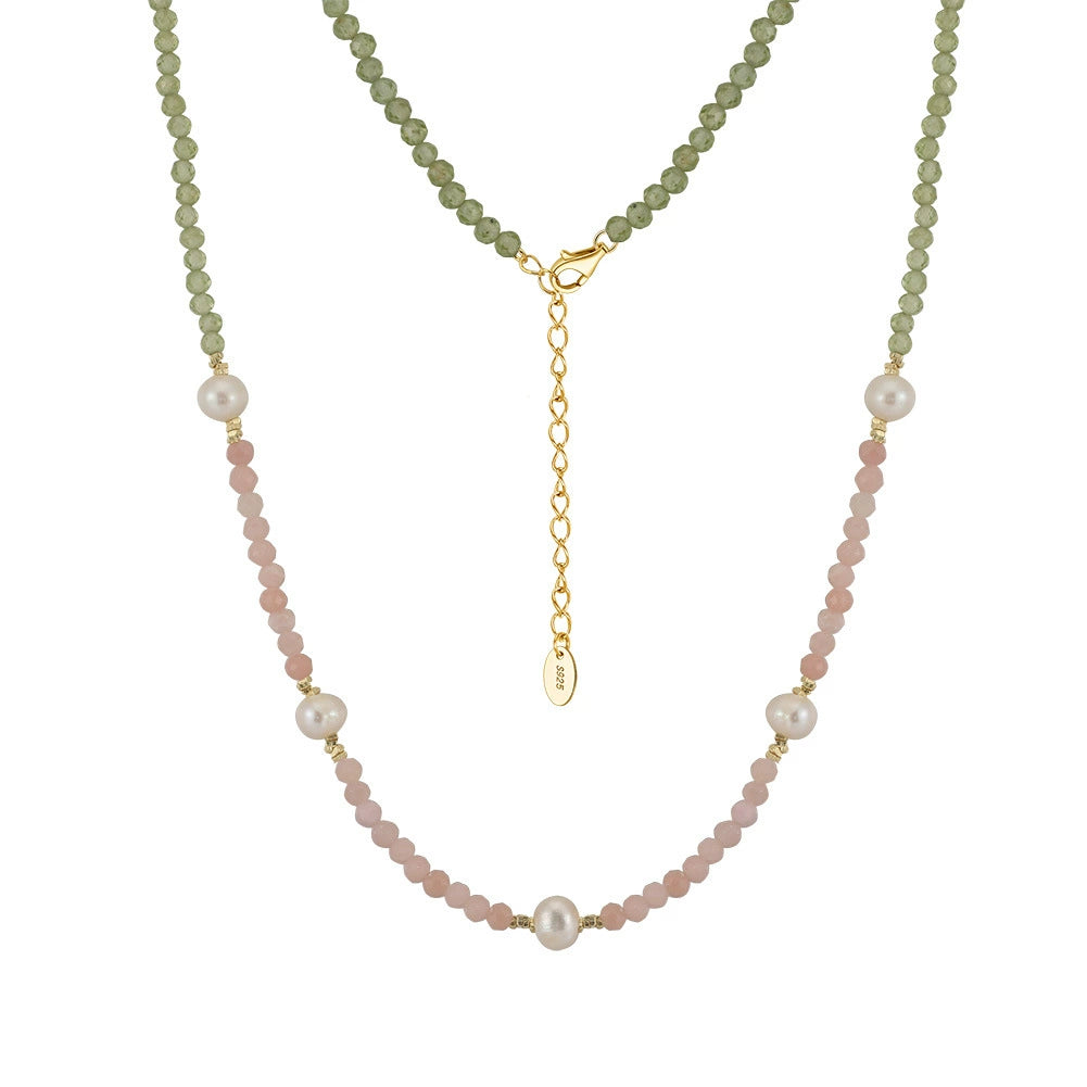 Jewelry Silver Natural Stone Olivine Pink Opal Ball Chain Electroplating Geometric