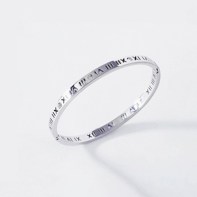 Selling Point 2 Korean-Style Roman Numeral Hollow Titanium Bracelet
