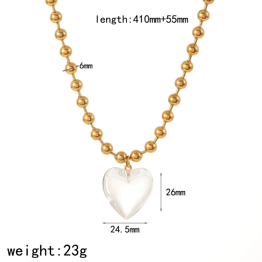 Ladies Fashion Heart Shape Titanium Steel Pendant Necklace With Ball Chain And Electroplating