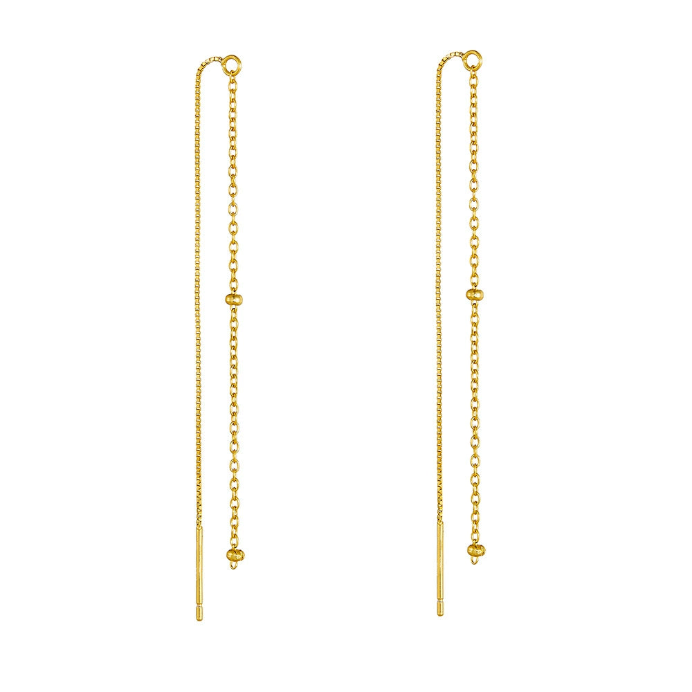 Long Tassel Round Bead Earrings In S925 Sterling Silver With Geometric Design For Women