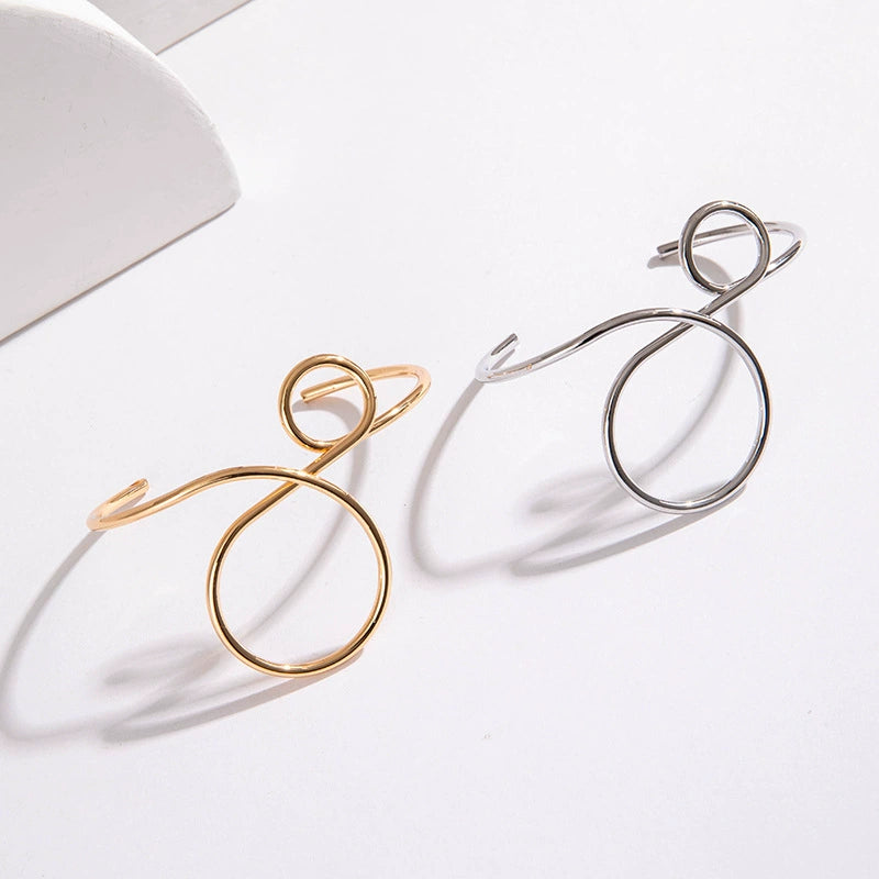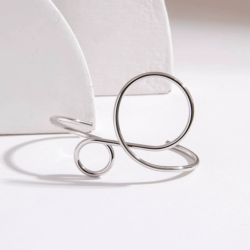 Minimalist Hollow Geometric Iron Bracelet And Open Finger Ring For Women Cold Style Niche Ins Tide