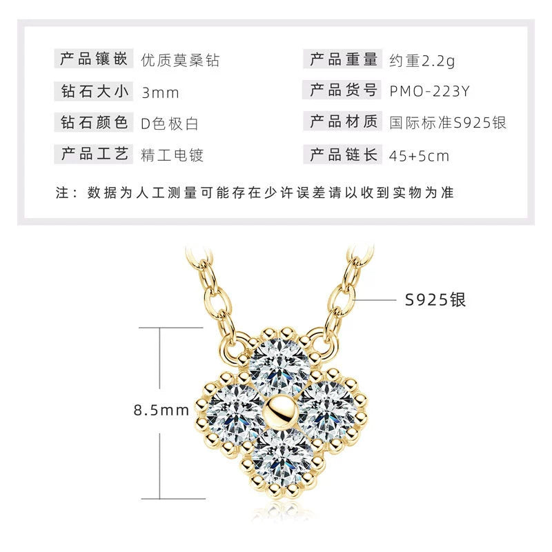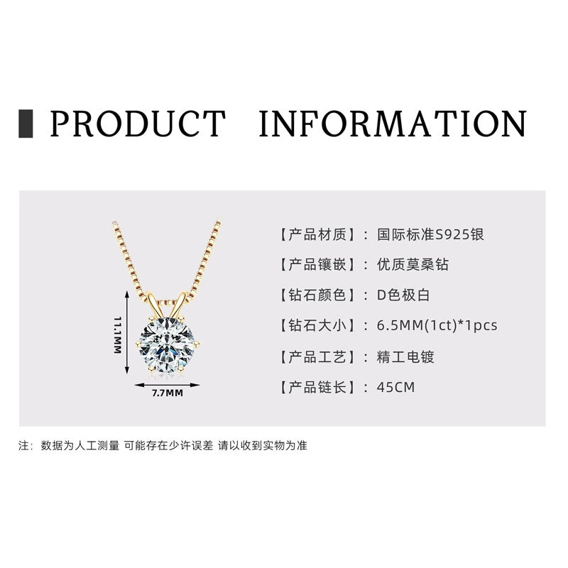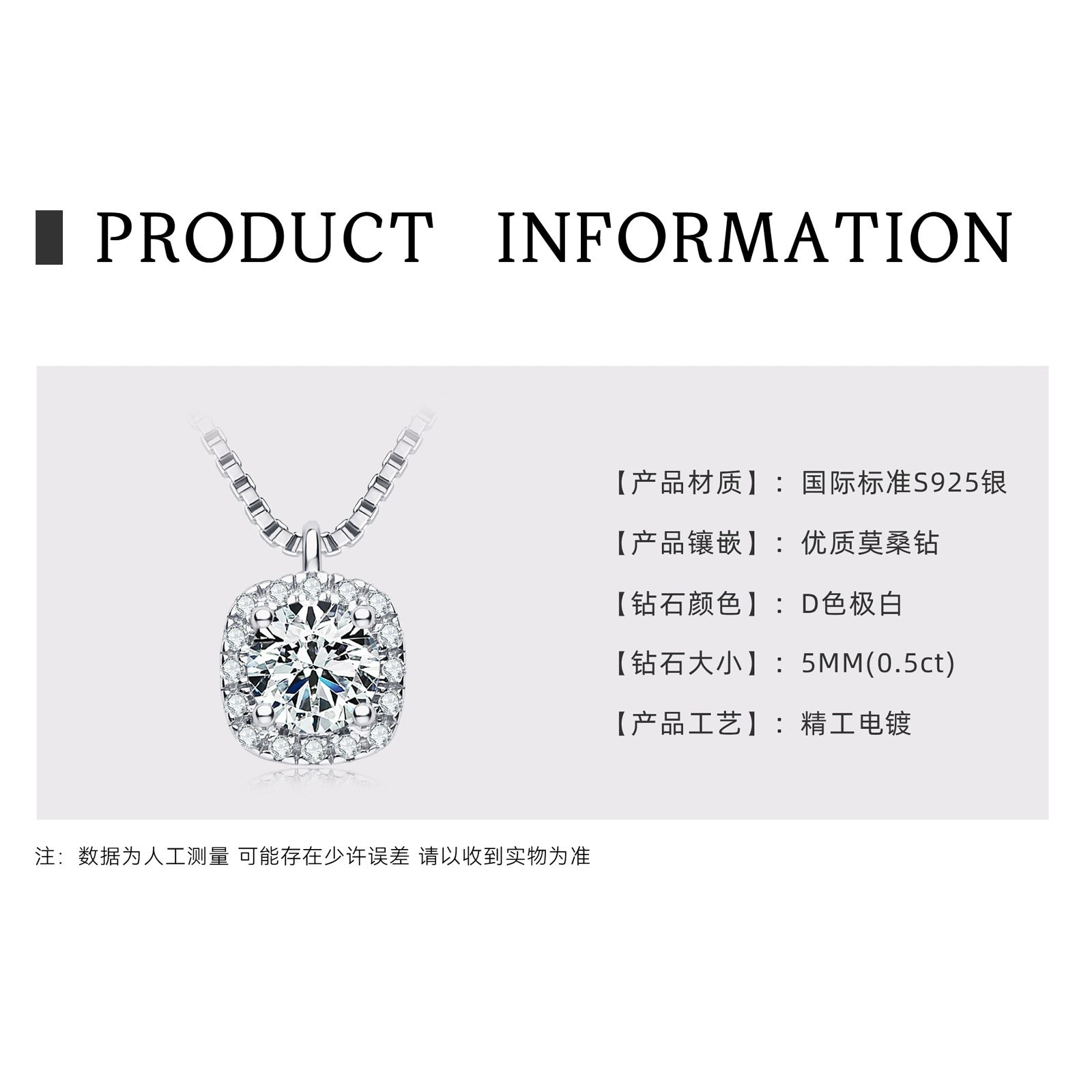 Moissanite Necklace S925 Sterling Silver Geometric Light Luxury Women's