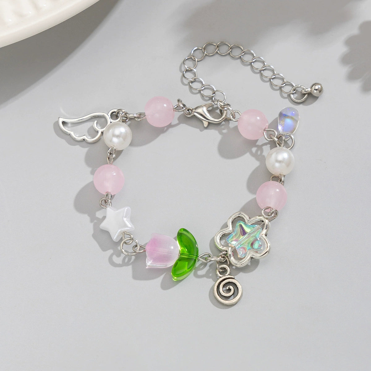 Necklace Alloy Imitation Pearl Sweet Style Bow Strawberry Fivepointed Star Flower Pendant Electroplating