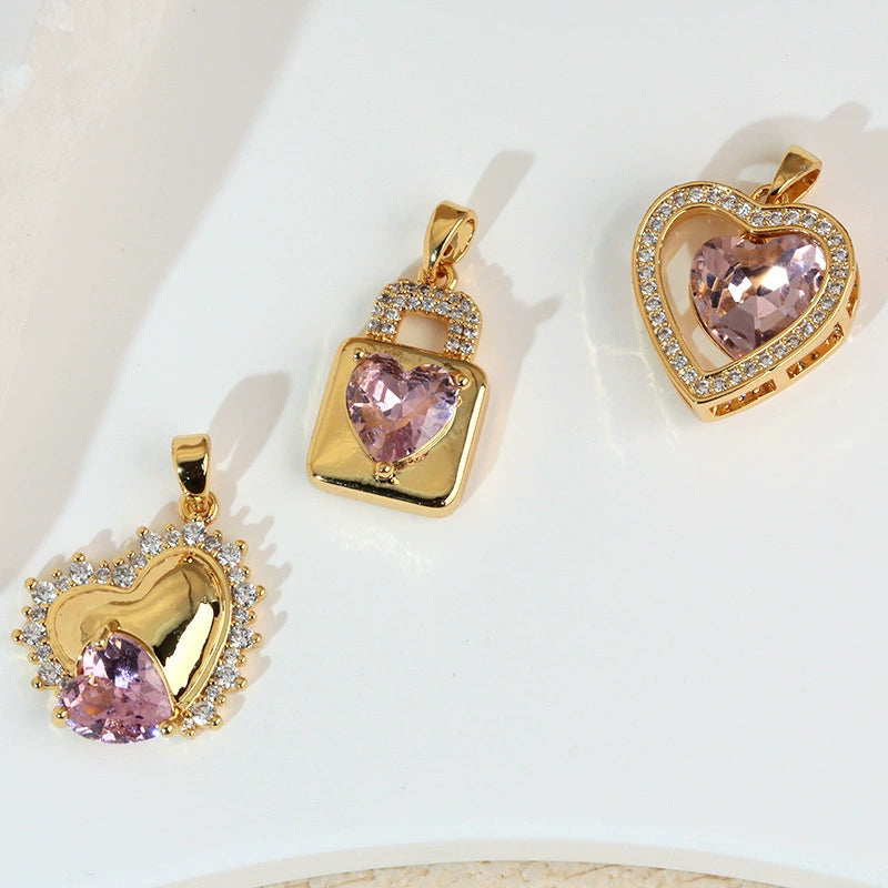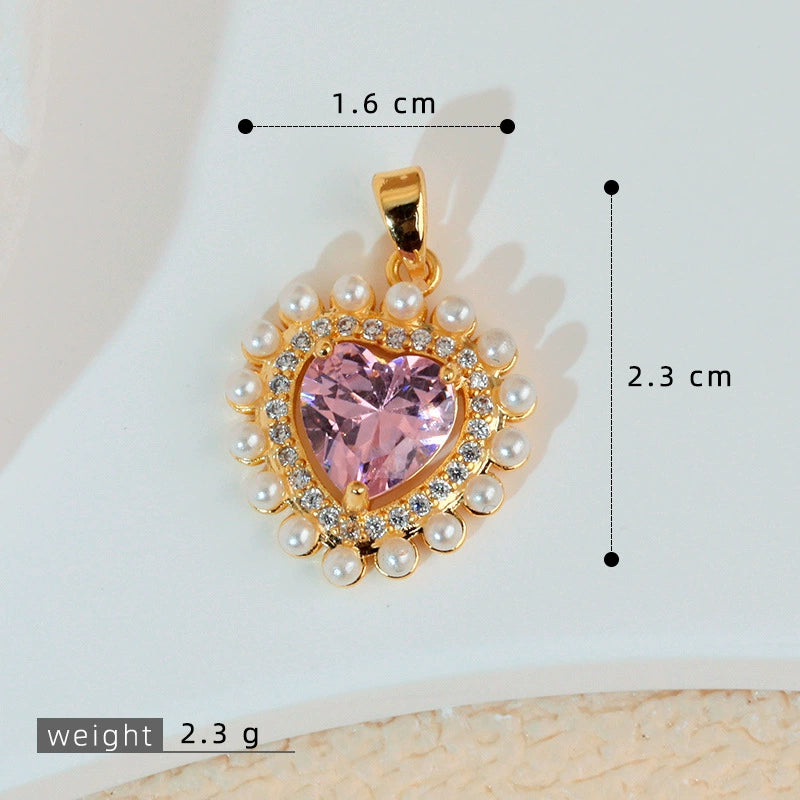 Necklace Copper Inlaid Zircon Pink Love Heart Shape Pendant With Melon Buckle Electroplating