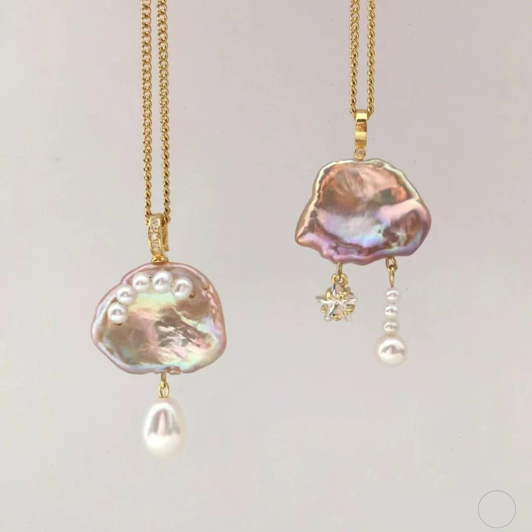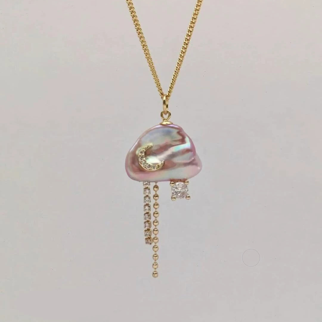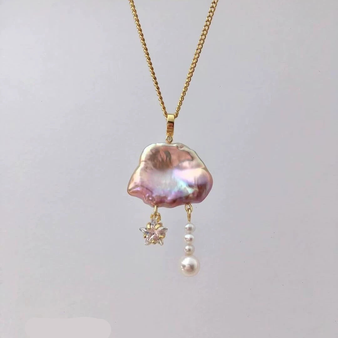 Necklace Natural Baroque Pearl Moon Star Pendant Copper Electroplating