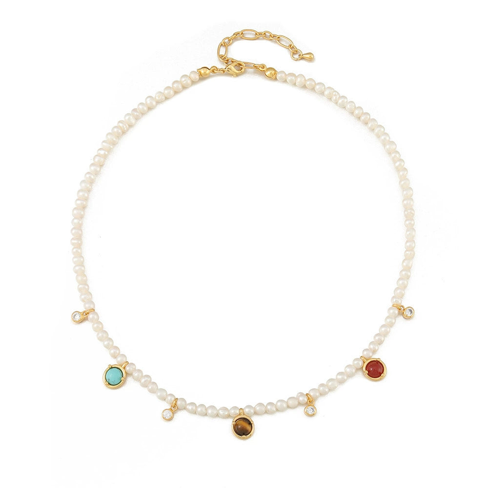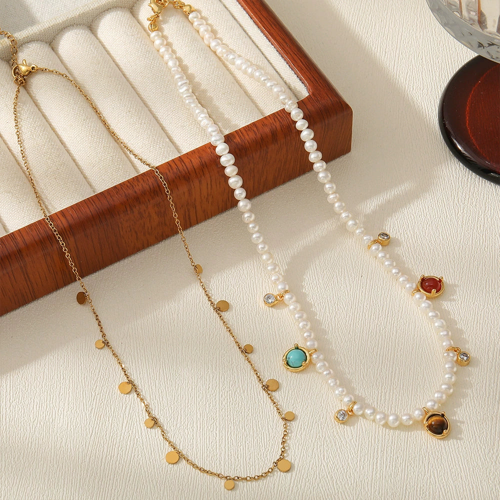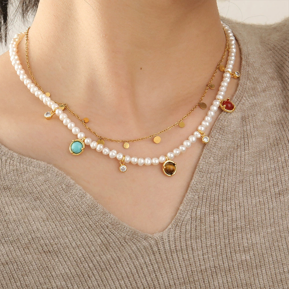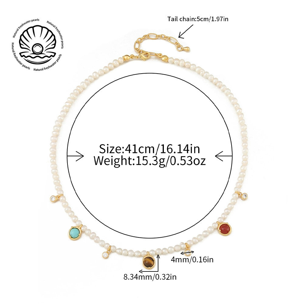 Necklace Natural Freshwater Pearl Red Agate Blue Pine Tiger Eye Stone Copper Shell Handmade Geometric French Vintage Style