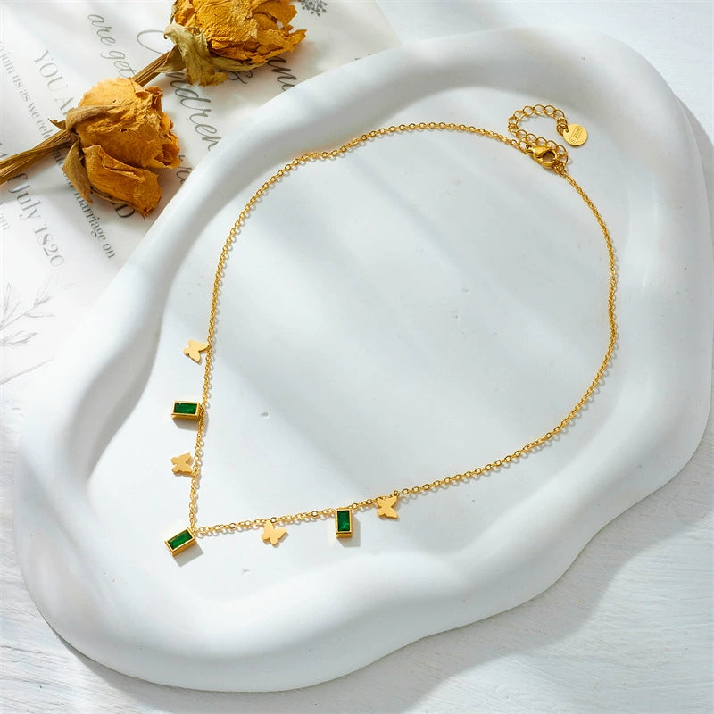 Necklace Stainless Steel Titanium Steel Square Butterfly Pendant Chain Electroplating Fashion Retro Allmatch Women's Accessories