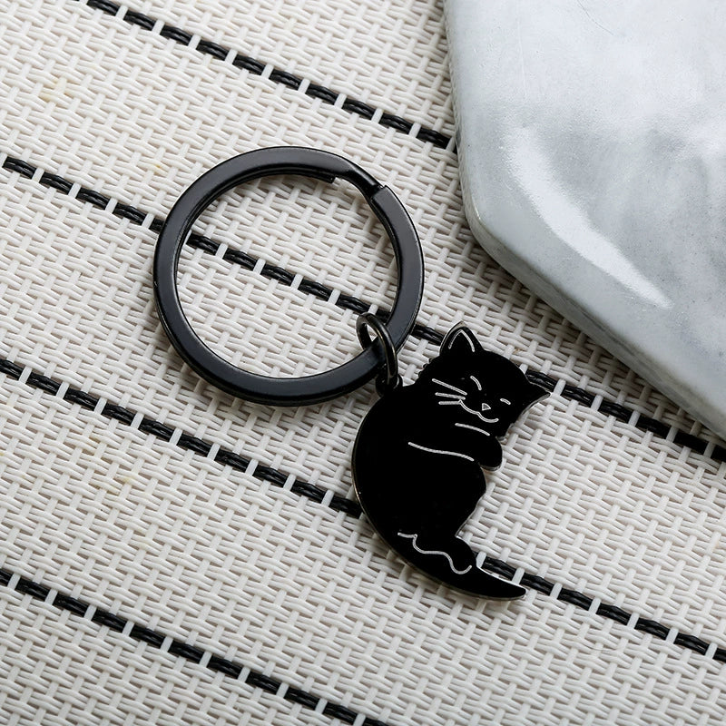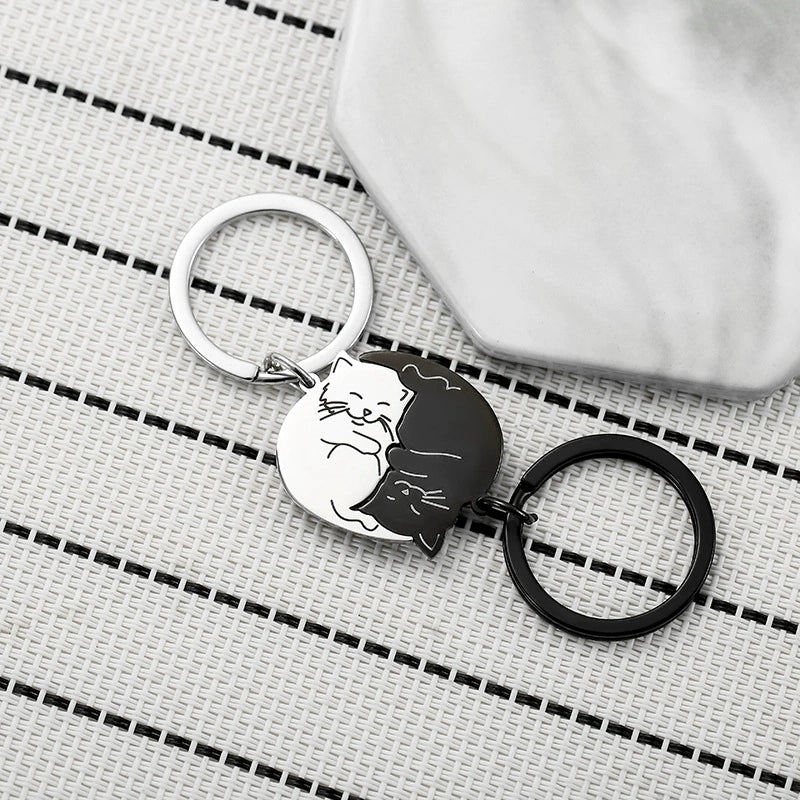 New Creative Black And White Cartoon Cat Stainless Steel Keychain Pendant For Couples