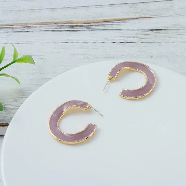 New Fashion S925 Silver Needle Colorful Dripping Alloy Earrings Fashion Generous C-Shaped Earrings Wholesale