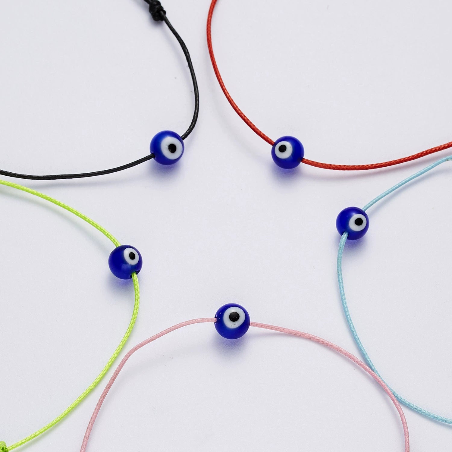 New Handmade Woven Adjustable Paper Card Evil Eye Bracelet With Blue Eyes In Red Black Fluorescent Green Pink Beads Alloy Cord For Unisex Wholesale