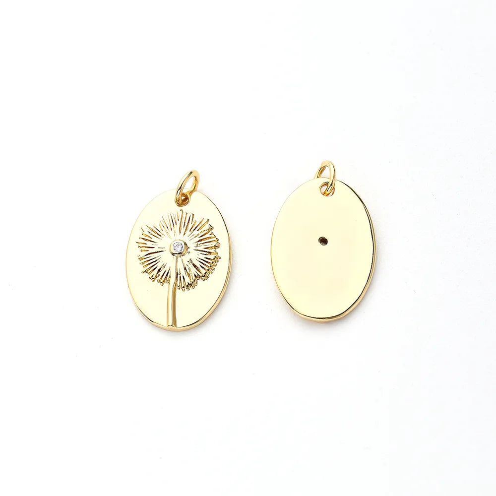 One Pack 13.5*19.5mm Hole 3~3.9mm Copper Zircon Gold Plated Oval Simple Dandelion Polished Pendant