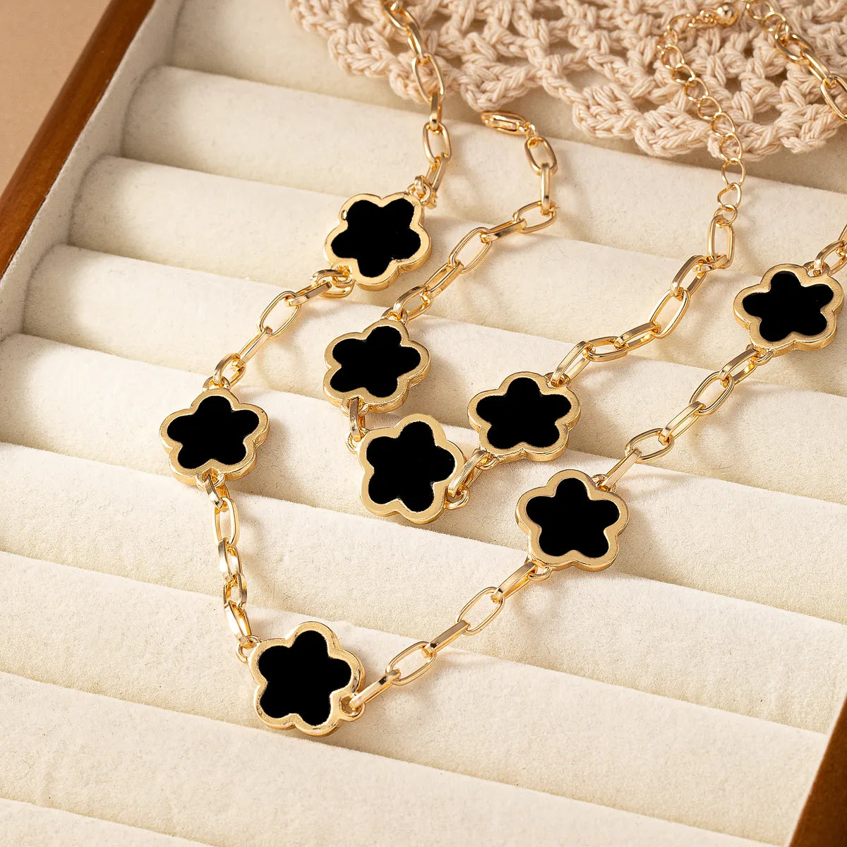 Pastoral Flower Alloy Enamel 14K Gold Plated Women'S Jewelry Set