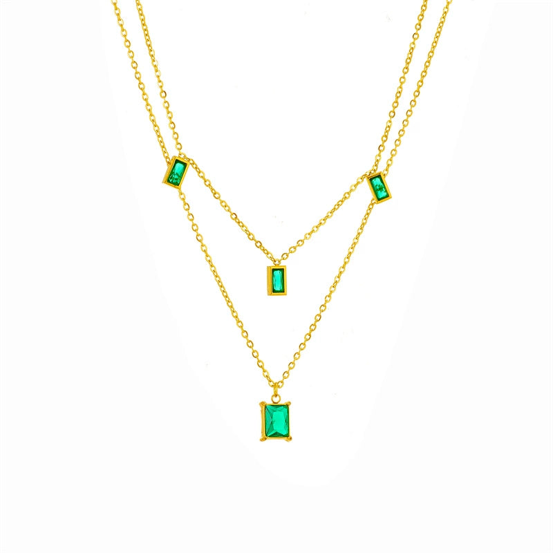 Pendant Necklace Titanium Steel Square Pendant Electroplating Multi Layer Clavicle Chain Retro Simple For Women