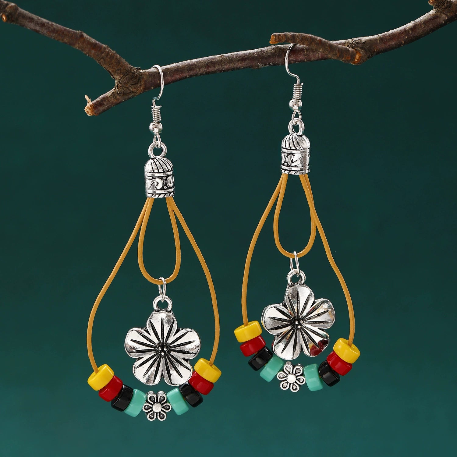 Retro Bohemian Simple Turquoise Beaded Flower Earrings For Women Alloy Electroplated Drop Shape Geometric Design