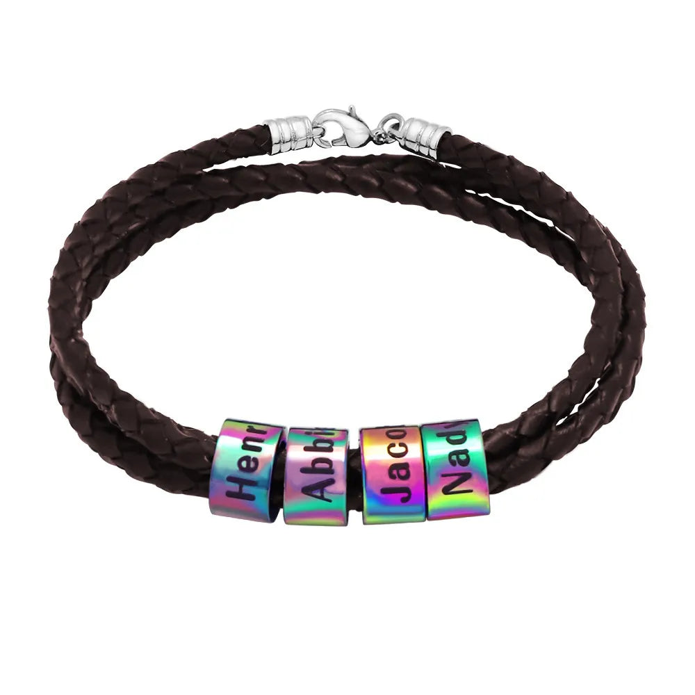 Retro Classic Style Customization Laser Engraving Pu Leather Titanium Steel Polishing Unisex Bracelets Men Cord & Leather Bracelets