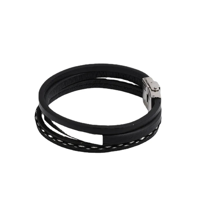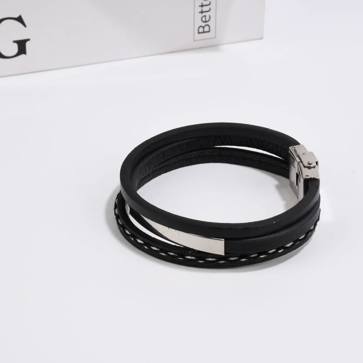 Retro Punk Geometric 201 Stainless Steel Pu Leather Unisex Wristband Men Cord & Leather Bracelets