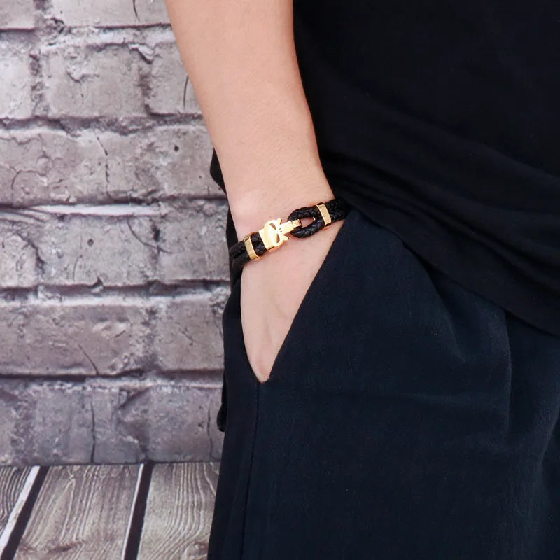 Retro Punk Geometric Pu Leather Titanium Steel Braid Men'S Bangle
