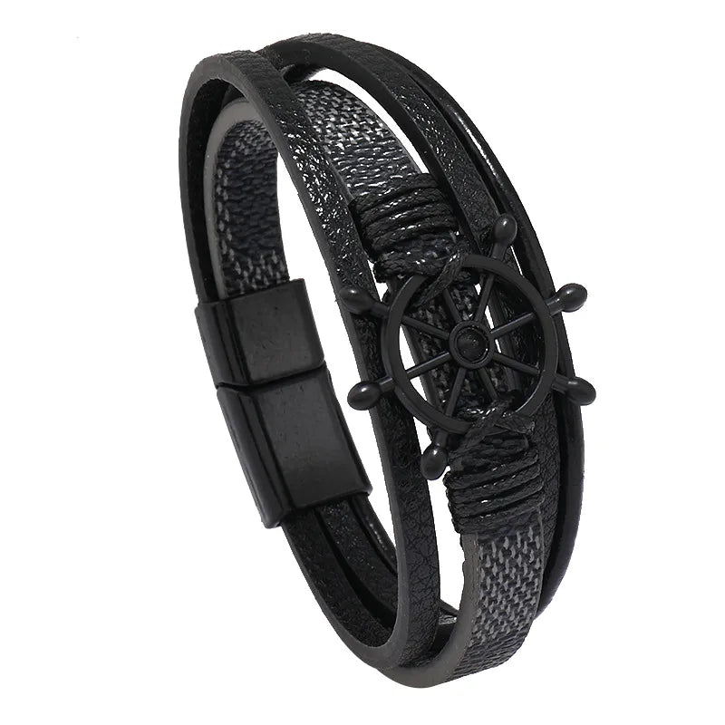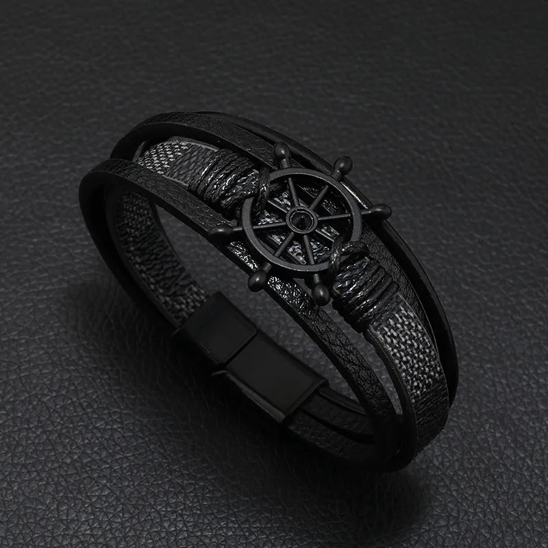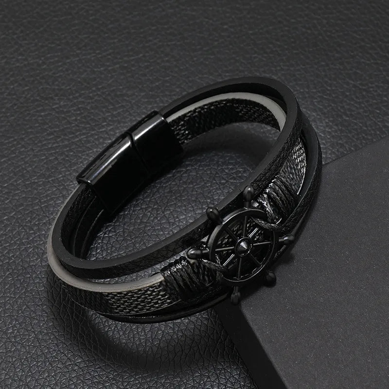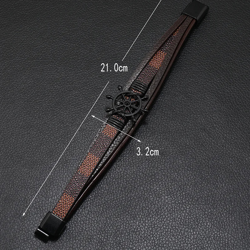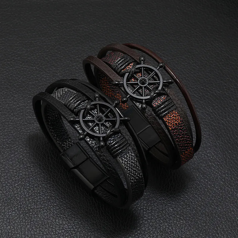 Retro Rudder Pu Leather Alloy Unisex Bangle