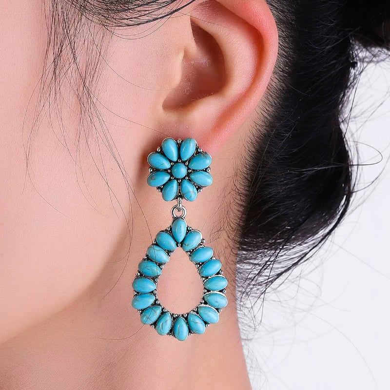 Retro Turquoise Drop Shape Earrings Electroplating Style
