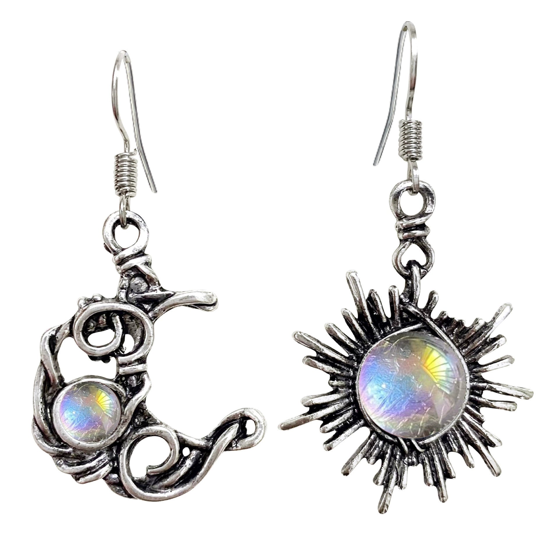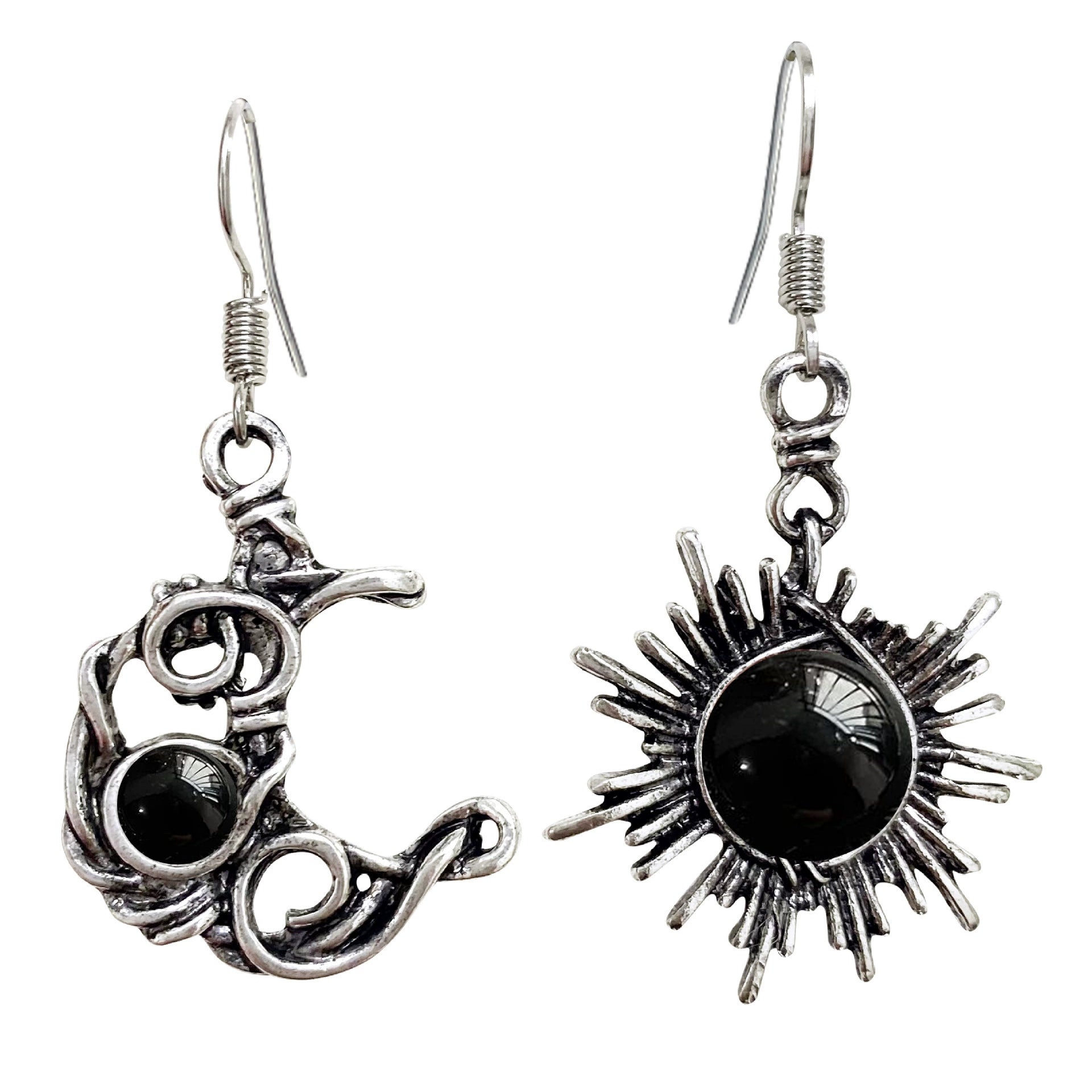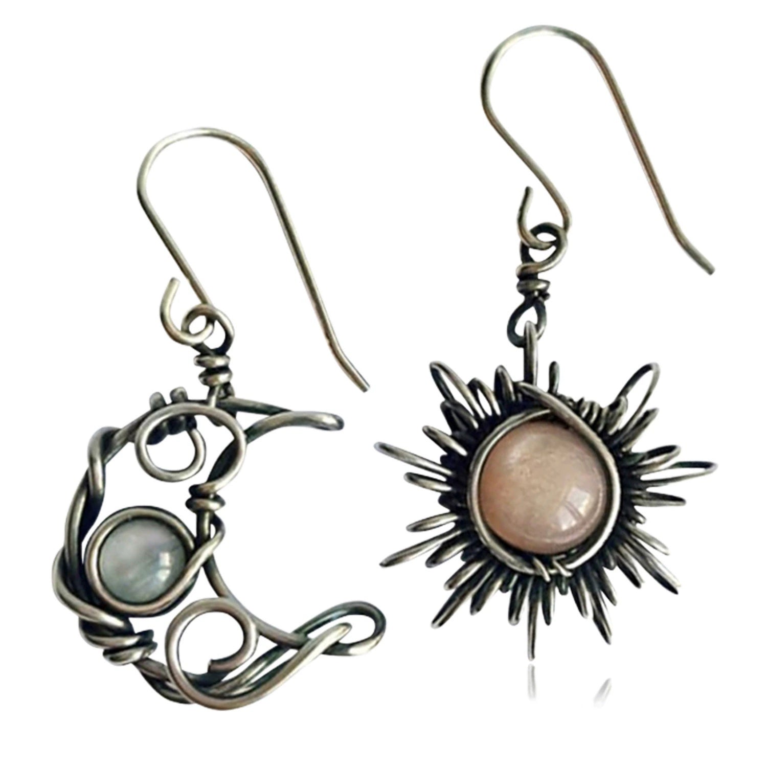 Round Chrysanthemum Bohemian Vintage Sun Moon Earrings Alloy Electroplated Moonstone Asymmetric