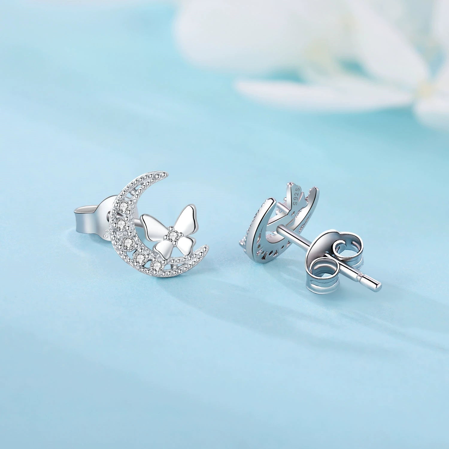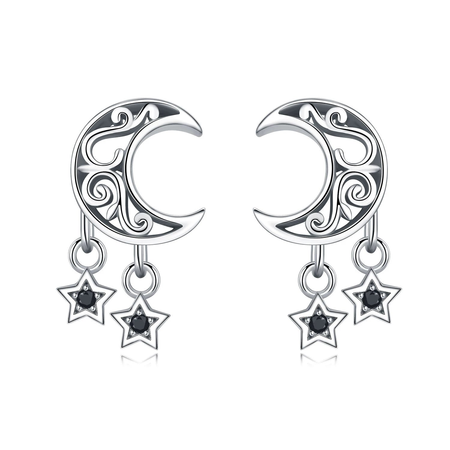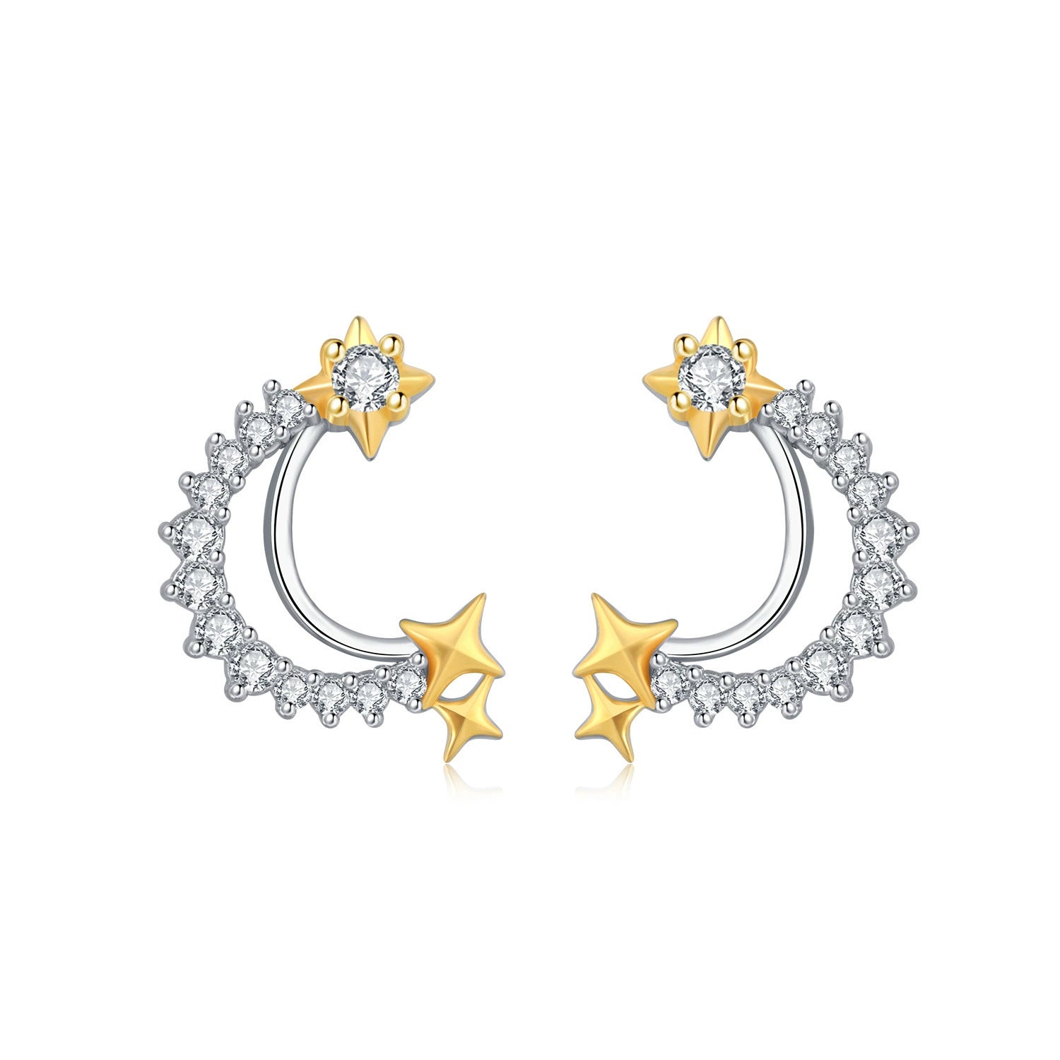 S925 Sterling Silver Irregular Star Moon Earrings Electroplated Jewelry Accessories For Women