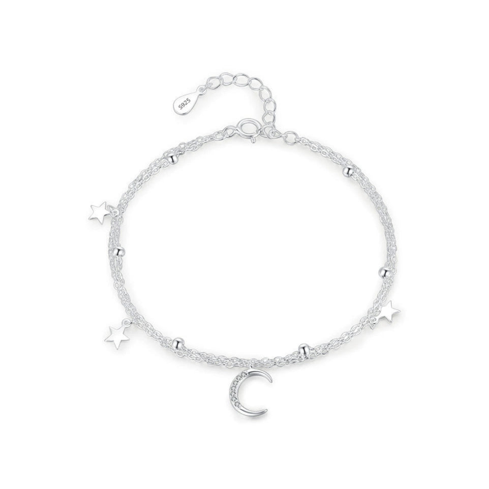 S925 Sterling Silver Star Moon Double Layer Stacked Elegant Beaded Bracelet For Women With Electroplating