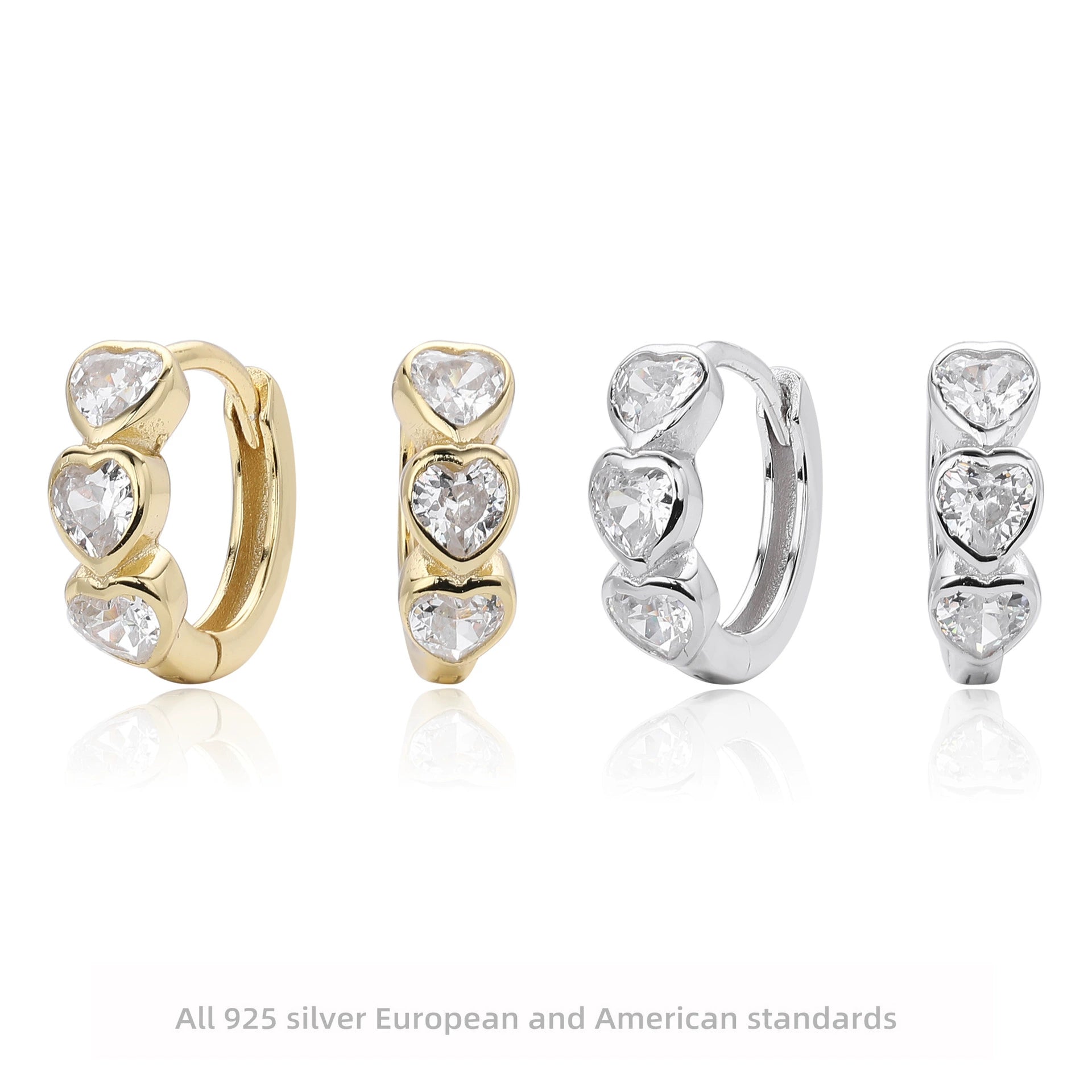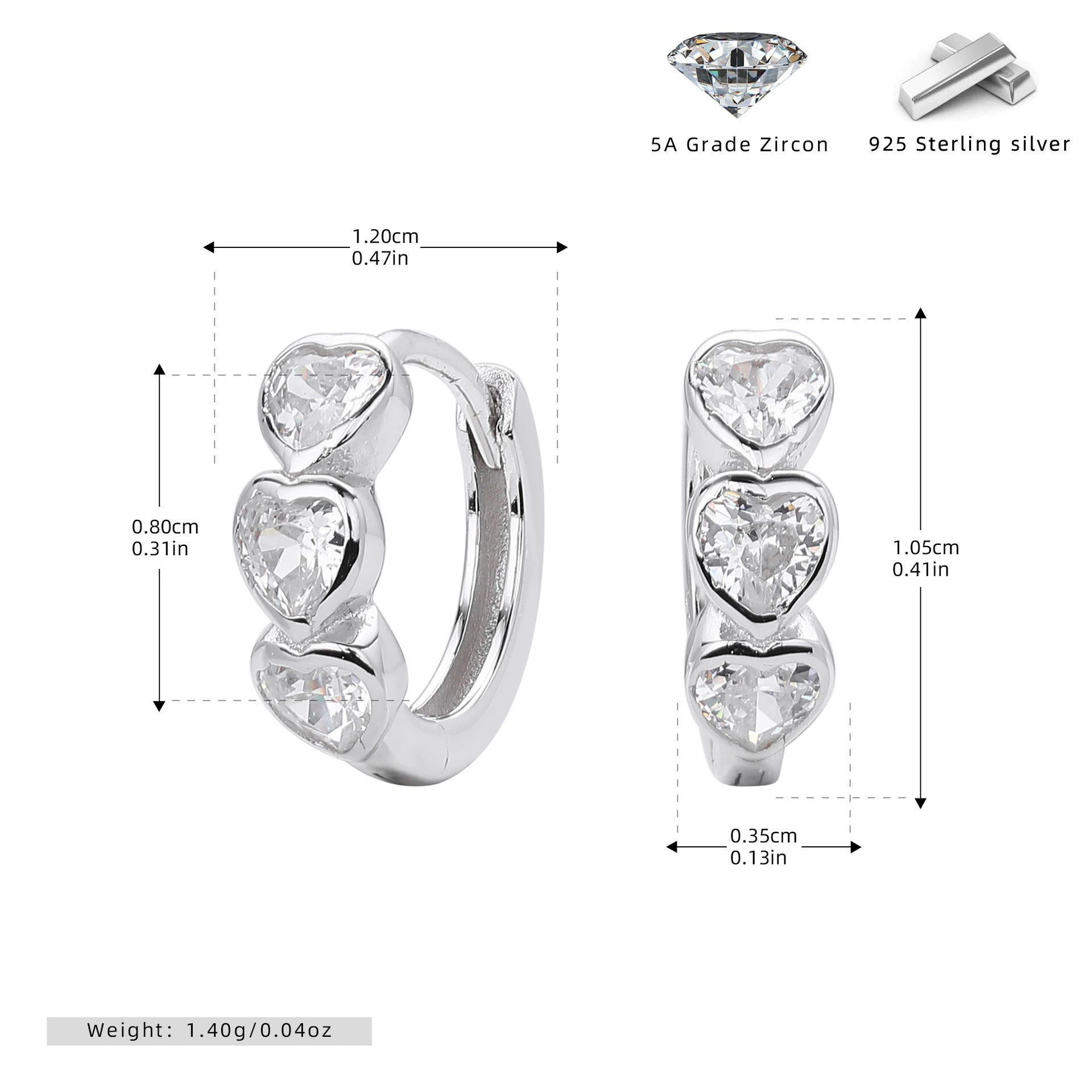 S925 Sterling Silver Sweet Heart Shaped Inlaid Zircon Women's Earrings