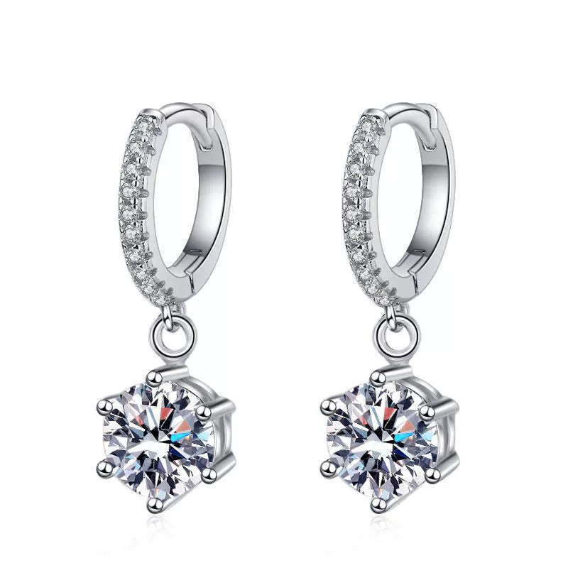 S925 Sterling Silver Women's Earrings Plated Pt950 Micro Set Classic Sixclaw With Crown Pattern Moissanite Earrings