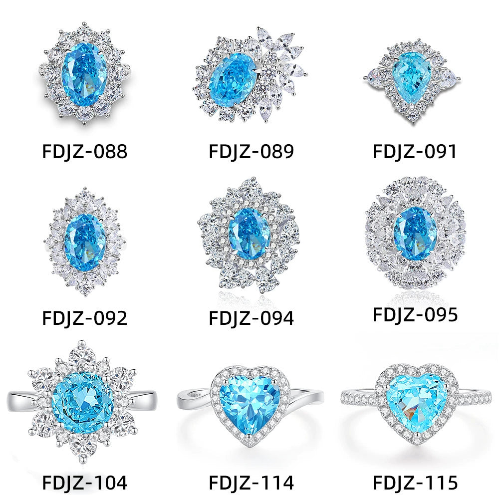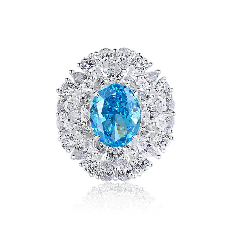 Silver 925 High Carbon Diamond Aquamarine Geometric Light Luxury Ring For Women