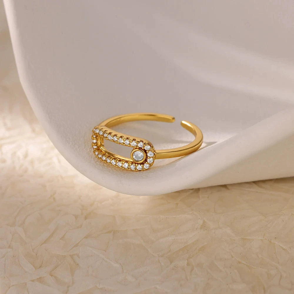 Simple Allmatch Index Finger Ring For Women Microinlaid Zircon Stainless Steel Opening Ring Electroplated