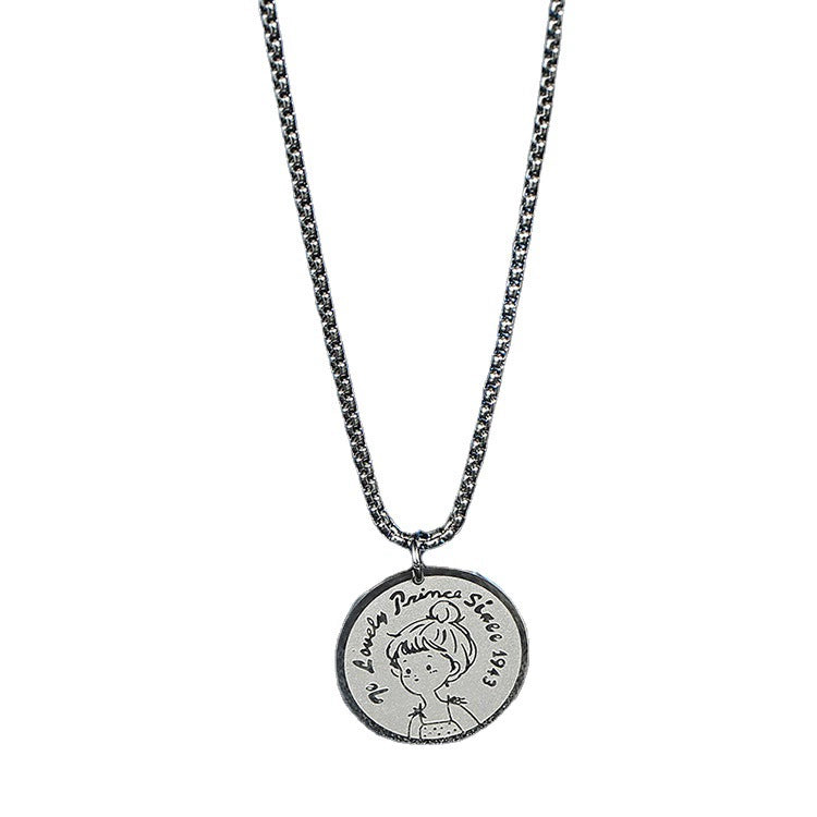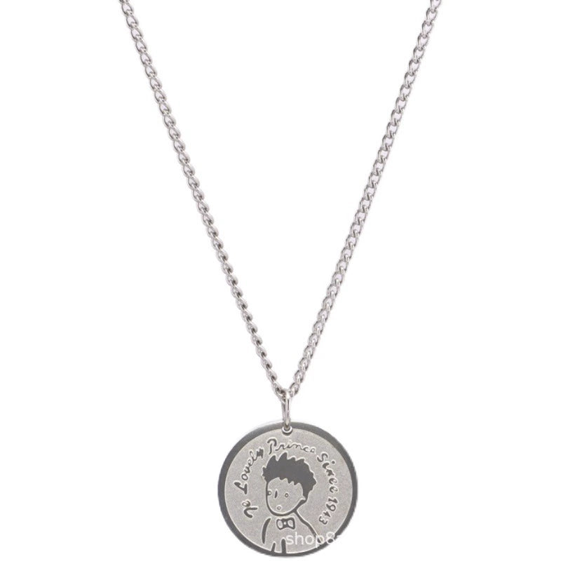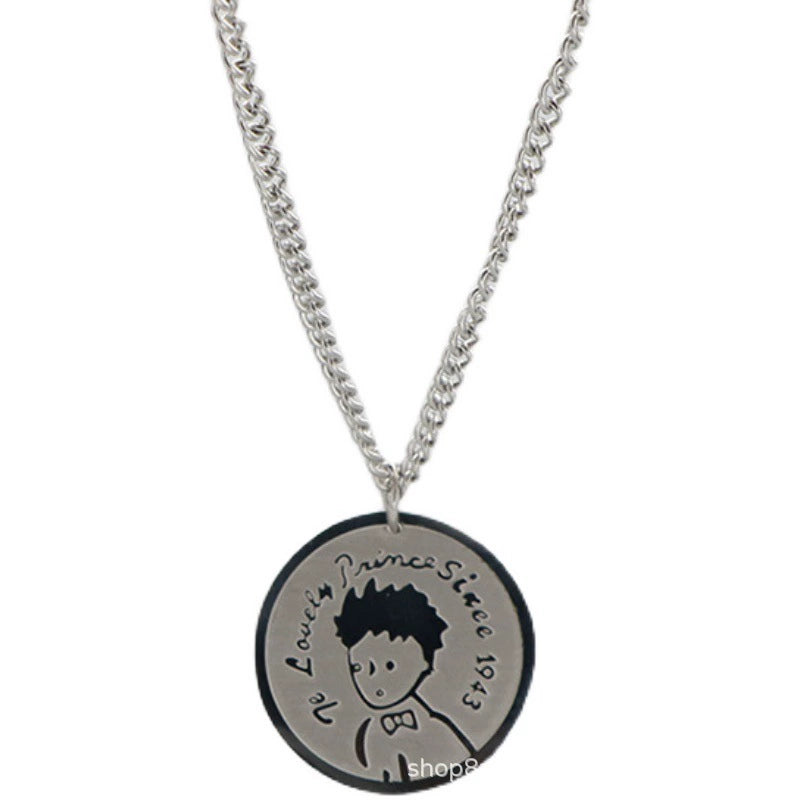 Simple Genderfree Hiphop Sweater Chain With Little Prince Cartoon Character Pendant In Japanese Titanium Steel