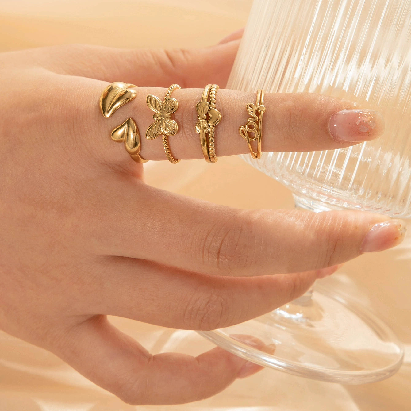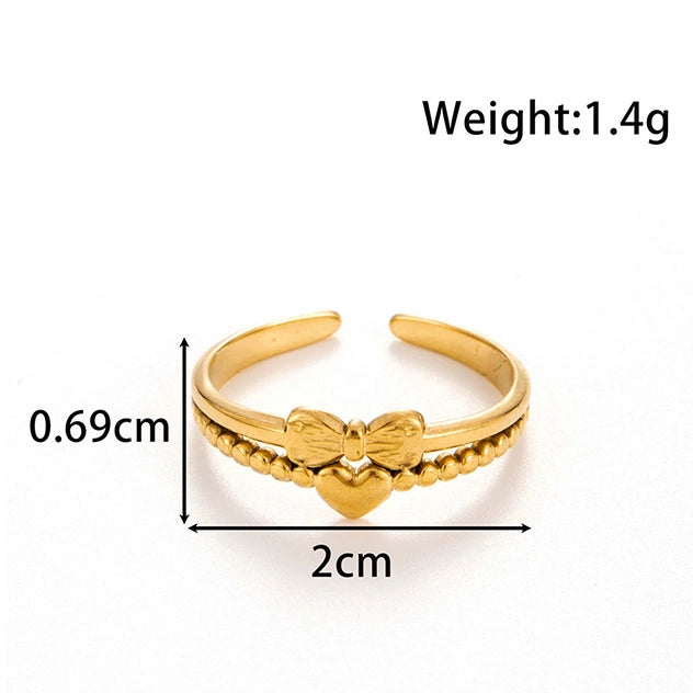 Simple Love Heart Shaped Bow Titanium Steel Opening Adjustable Ring With Electroplating