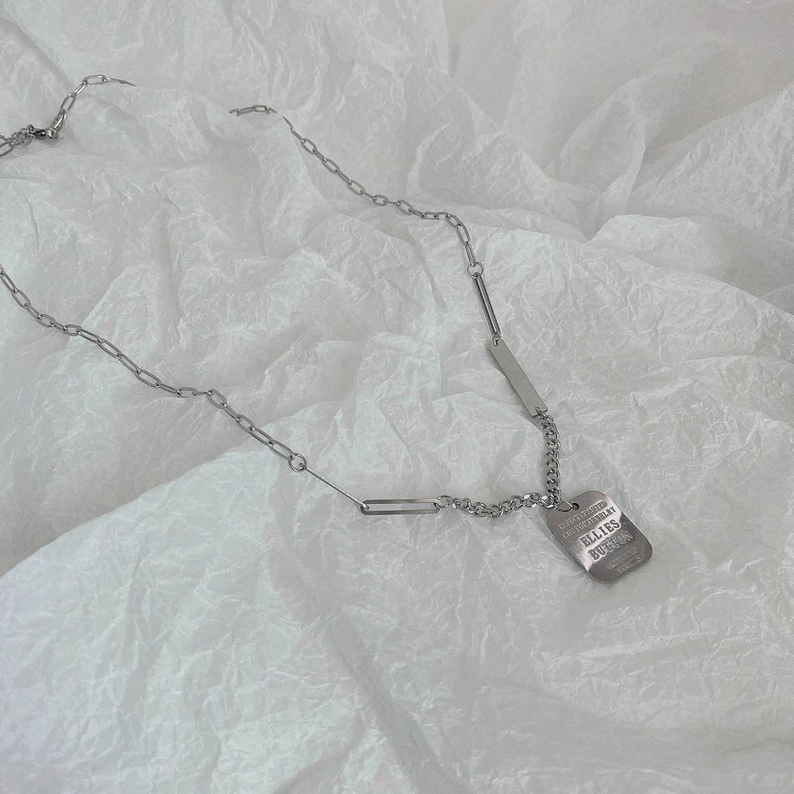 Simple Square Letter Titanium Steel Necklace With Stitching Chain Geometric Design Cold Style Couple Accessories