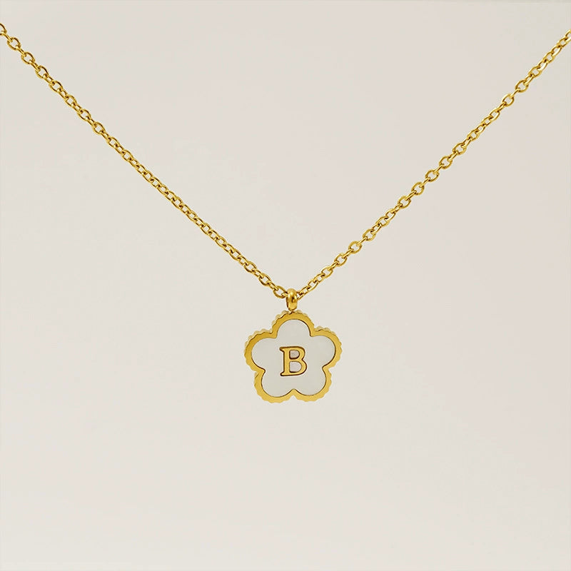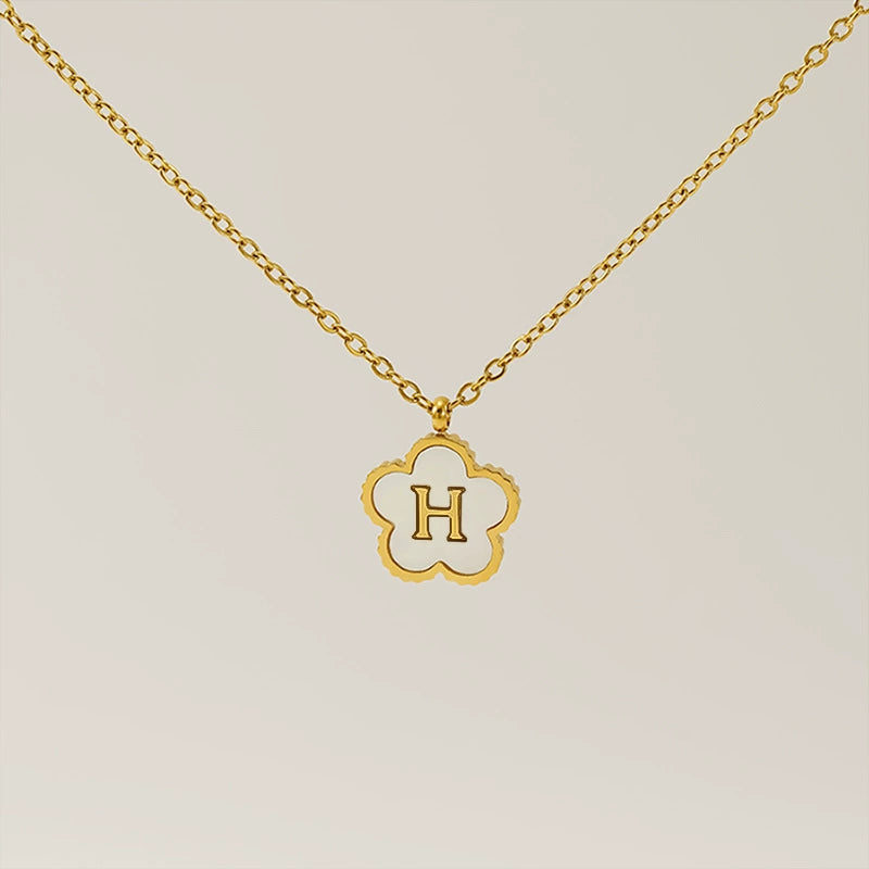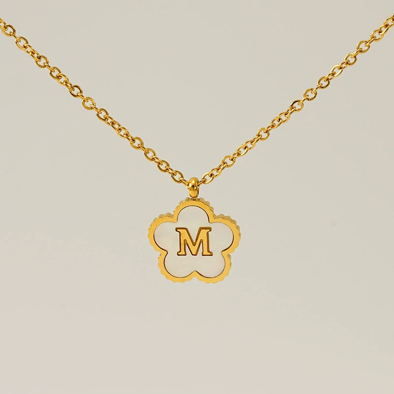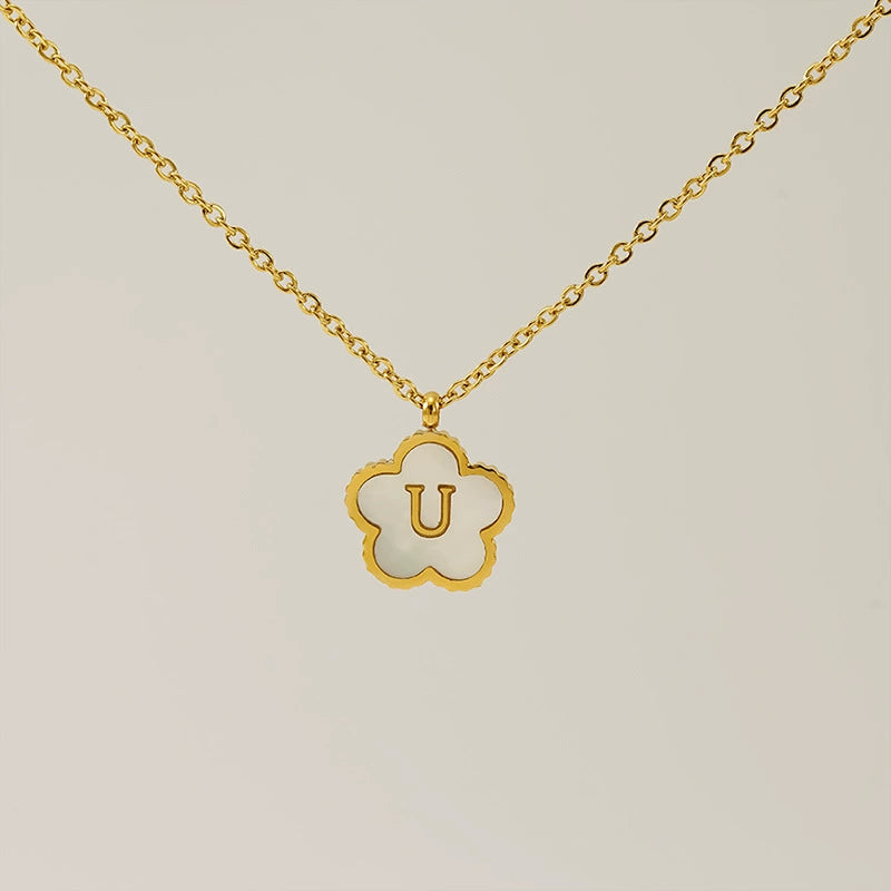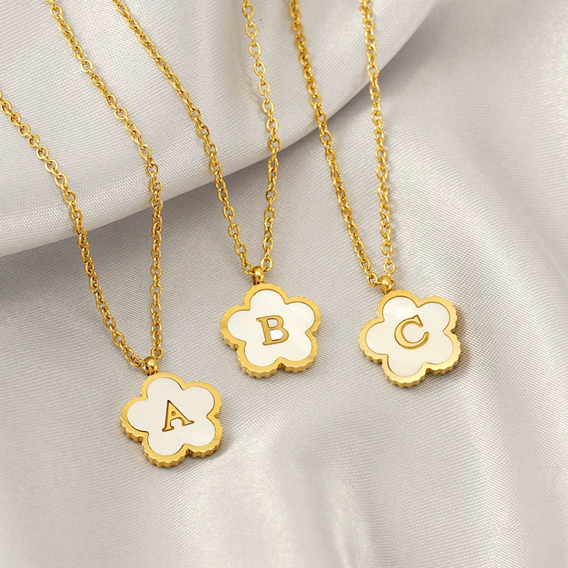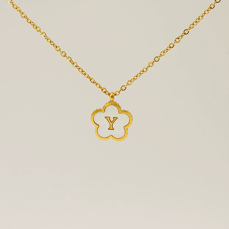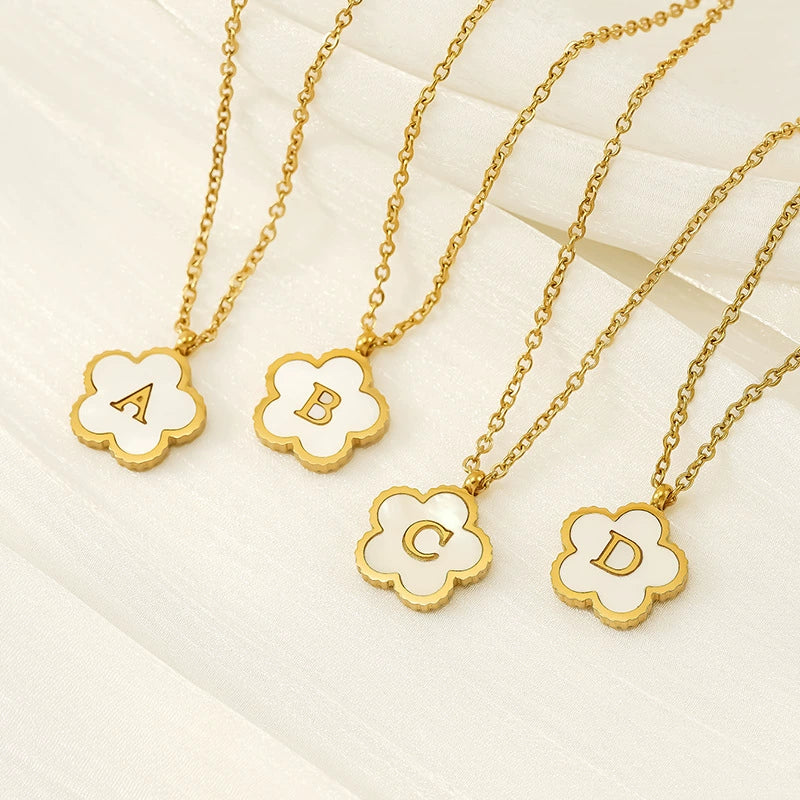 Simple Stainless Steel Fiveleaf Clover Letter Pendant Necklace With Polishing For Unisex